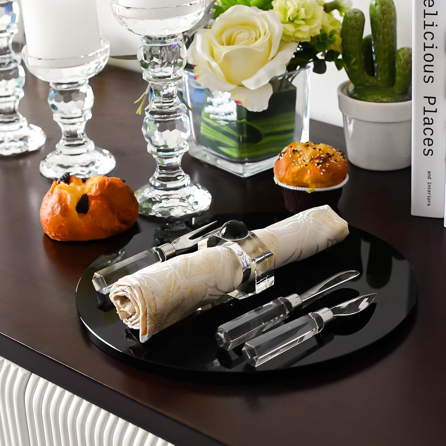 • Gorgeous Design: This huge crystal napkin ring is made of lead-free crystal with a black semi-oval shape set at the top. The glitter is enough to attract anyone's attention, classic and modern design.