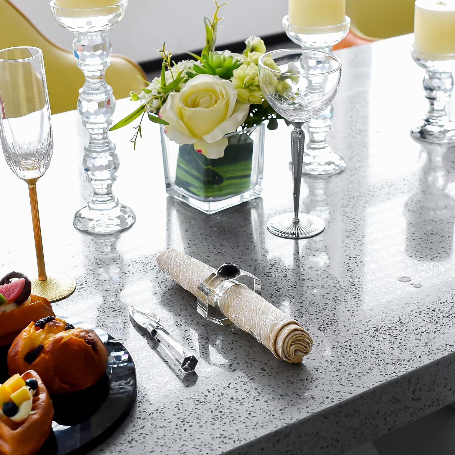 • Work for Any Occasion: Perfect for wedding, dinner party, tea party, bridal shower, special occasions celebration, romantic candlelit banquet, holiday party decor.Ideal crystal napkin rings for home kitchen, hotel and restaurant.