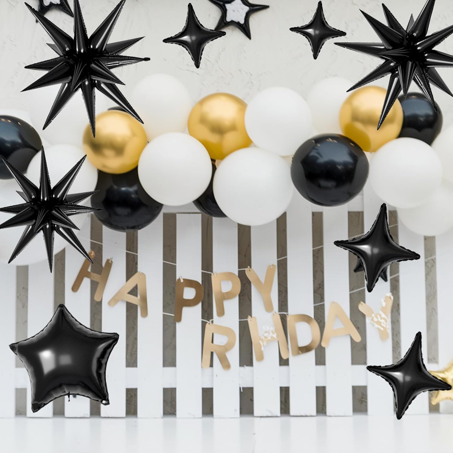 • 【Black Star Balloons】The package includes:6pcs 22-inch Star-Shape balloons(Black), 5pcs 10-inch Four-Pointed Star balloons(Black), 2pcs 18-inch Five-Pointed Star balloons(Black), 3pcs 10-inch Five-Pointed Star Shape balloons(Black),1 dispense and 1 straw. These foil star balloons are Great for birthdays, weddings, baby showers, and engagement parties