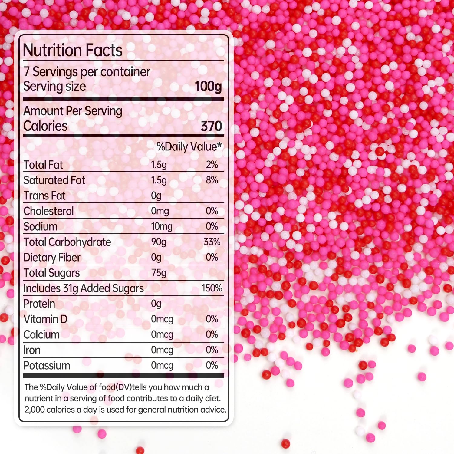 • The Edible Pink Nonpareils Sprinkles are a mix of red, pink and white candies. They are a delight for festivals, decorating cupcakes, cakes, donuts, cookies, ice cream, and waffles, adding romance and love to your baking.