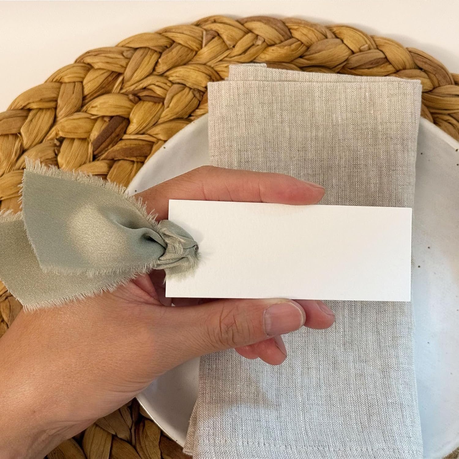 40 Pcs Place Cards for Table Setting - 3.94"X1.57" Table Name Cards with Dusty Green Ribbon Name Tags for Wedding Dinner Party Events
