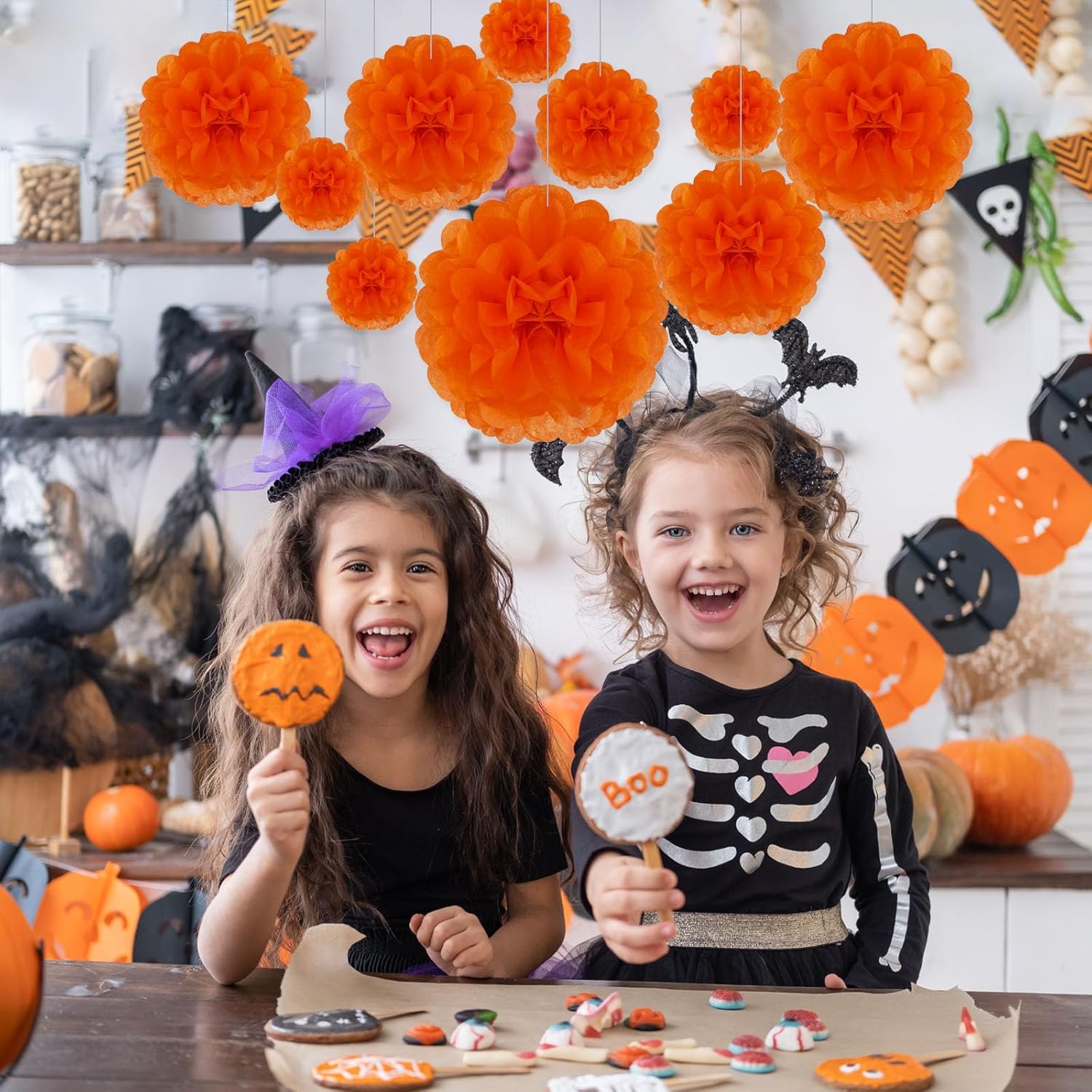 • 【Large Set】20 Pieces orange paper flower balls include 6 of 6-inch, 6 of 10-inch, 5 of 12-inch, and 3 of extra-large 14 inch paper pom pom flowers.