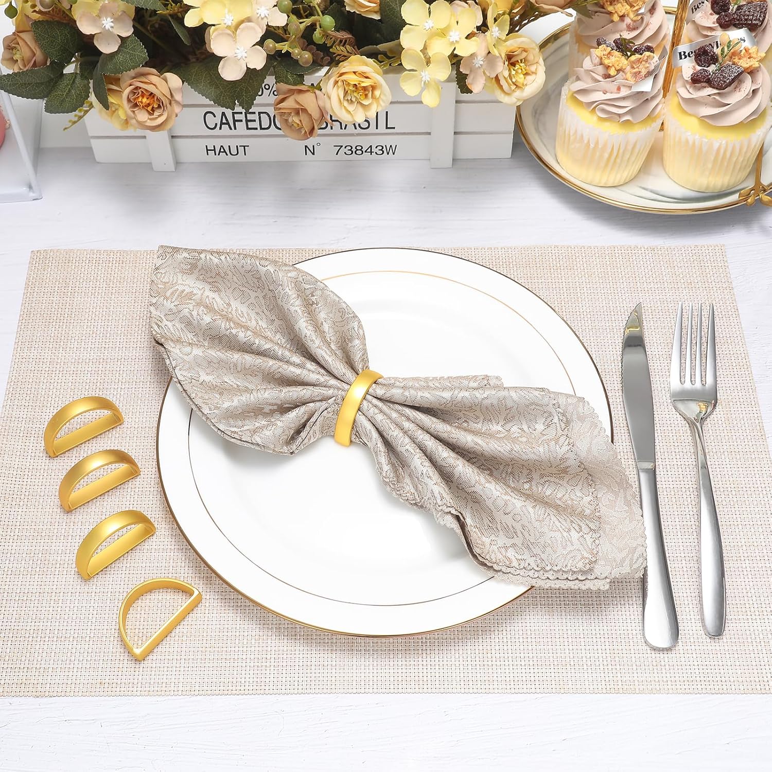 • Classy and Pretty:These napkin ring holders feature a beautiful minimalist design that adds a touch of elegance to your dining setting, The metallic gold finish is sleek and modern, making them versatile for both casual and formal occasions