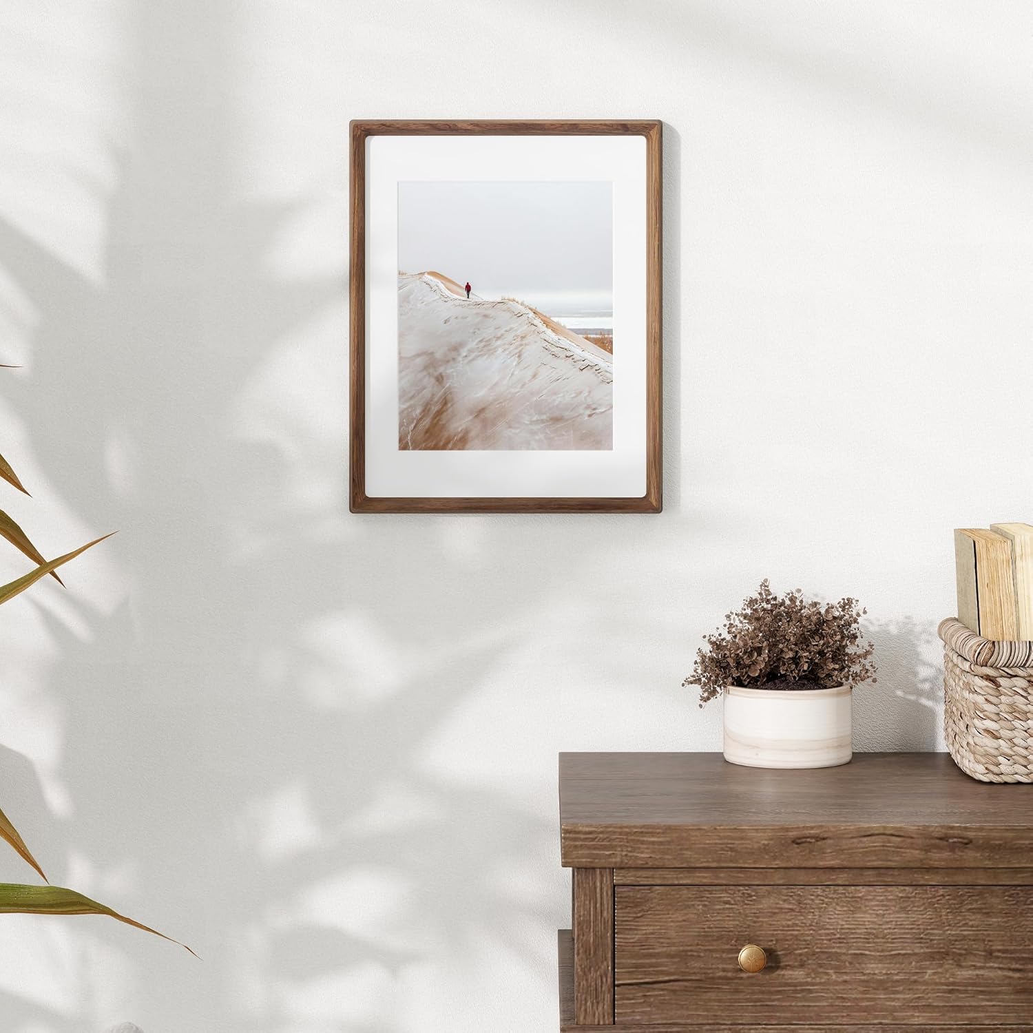 11x14 Wooden Picture Frames USA-Sourced Natural Walnut Solid Wood Photo Frame Handcrafted Rounded Corner with Mat to 8x10 Picture Frame Vintage Display with Real Glass Family Picture