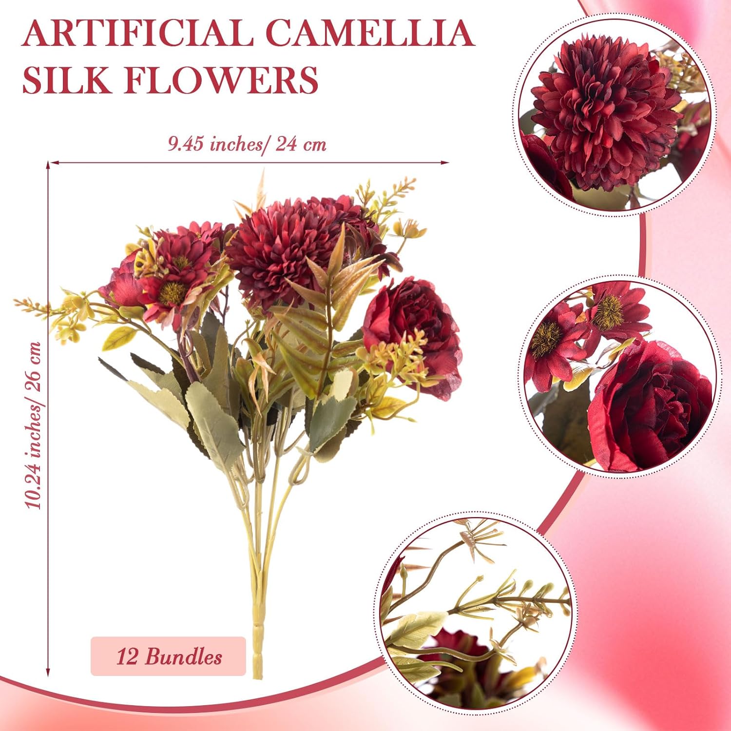 • Rich Flower Decorations: 12 bundles of faux peony flowers in claret will be delivered to your hand quickly once ordered, and each bundle has 7 flower heads, bright and stylish, enough for you to use or replace, making your home look more charming