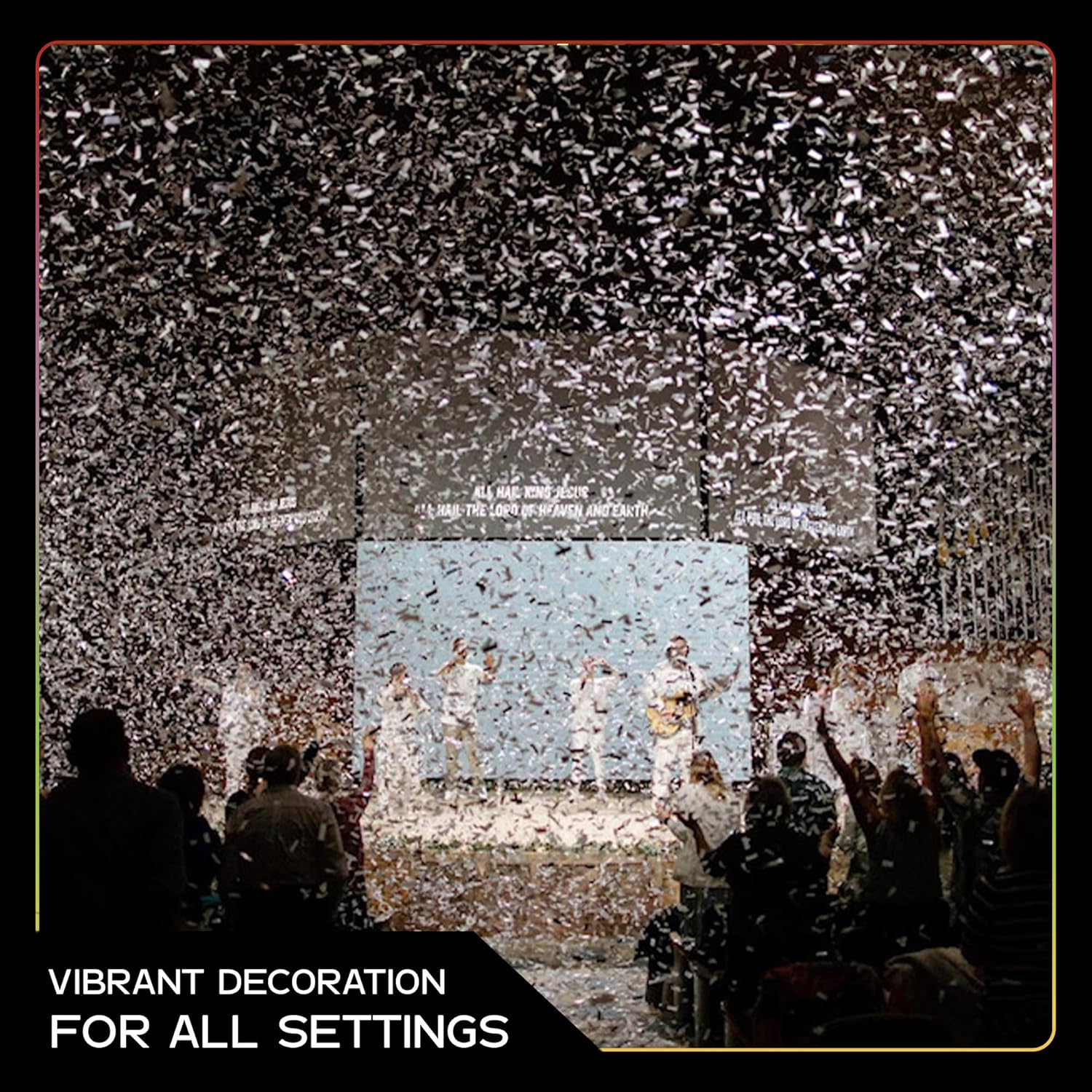 • Classic Rectangles for Floating Magic: Measuring 2" x ¾", each rectangular paper confetti piece is precisely cut to create a light, floating effect in the air. Whether tossed by hand or launched from confetti cannons, it adds a captivating touch to dance floors, ceremony aisles, photo shoots, or event stages.