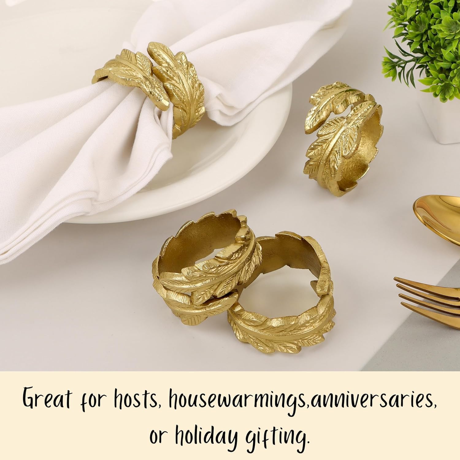 • ✅ Size & Pack : Set of 12 Leaf Napkin Rings - Each ring measures approx. 1.25 x 1.25 x 1.75 inches, perfectly sized for standard cloth napkins, enhancing table settings with a stylish gold accent.