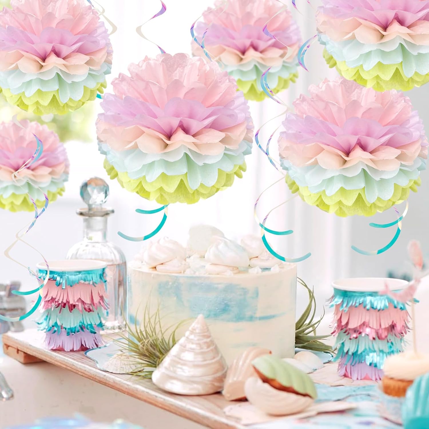 • Vibrant and Elegant Pastel Tissue Paper Flowers - Transform any celebration into a colorful, magical event with our set of pastel paper pom poms. Featuring a beautiful mix of soft pink, lavender, peachy red, light blue, and pale yellow, these hanging tissue flowers are designed to create an enchanting atmosphere for birthdays, baby showers, Easter parties, or themed events like mermaids and unicorns. Perfect for both indoor and outdoor decoration, these flowers add a touch of elegance to your special occasion.