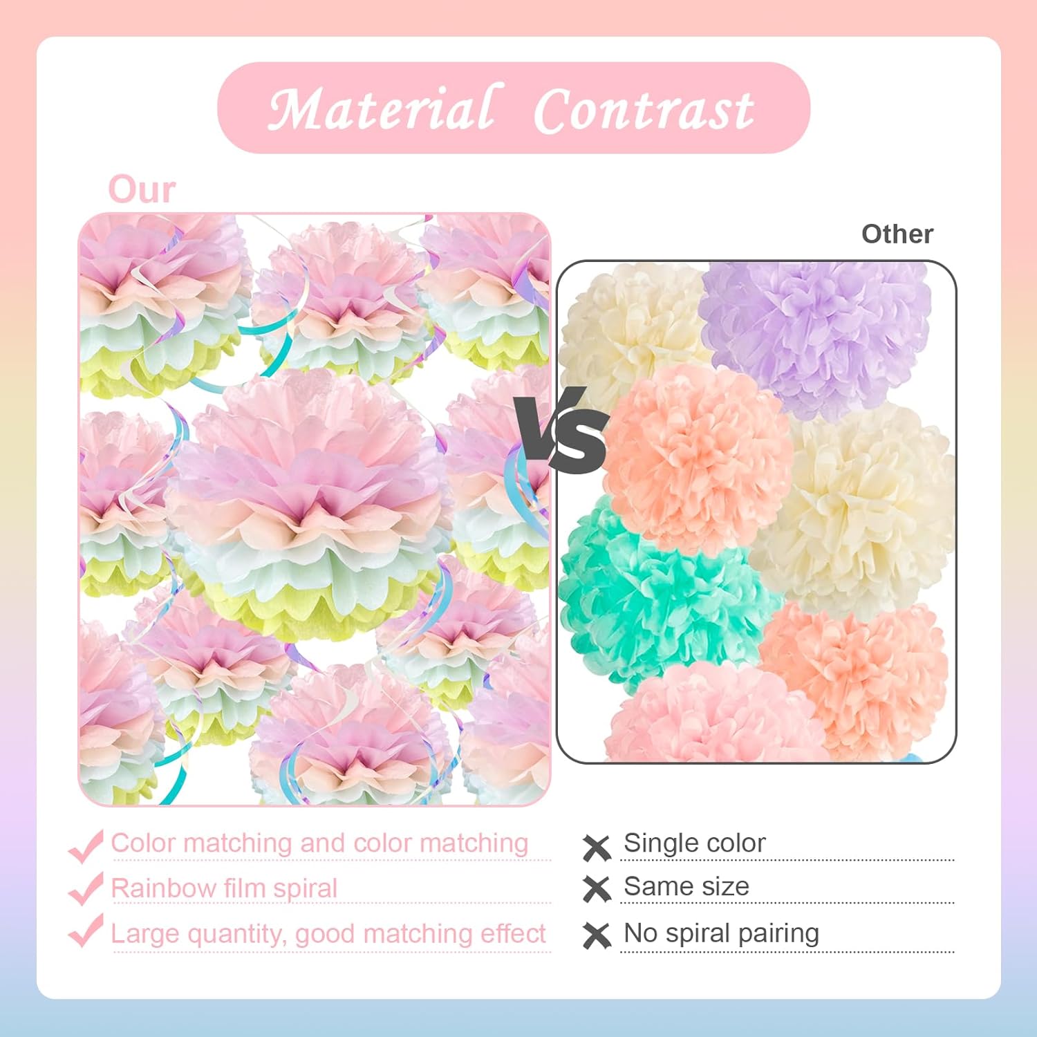 • Ideal for Various Celebrations and Themed Parties - These pastel paper pom poms are perfect for any girl’s birthday party, baby shower, Easter celebration, or themed event like mermaids, unicorns, or fairies. Whether you're hosting a small intimate gathering or a larger bash, these decorations add charm and character to your venue, making them a must-have for any party planner.