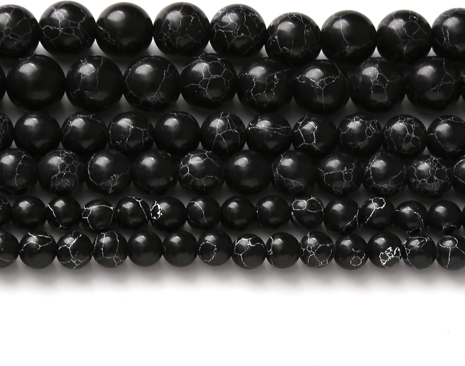Black Turquoise Stone Beads 6MM Gemstone Round Crystal Energy Jade Beads for Jewelry Making DIY Bracelet Necklace Jewelry Making 1 Strand 15.5inch 60PCS 6MM
