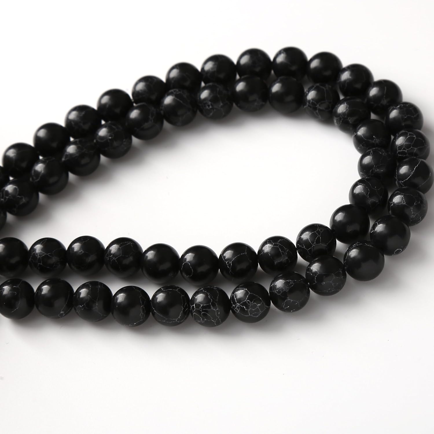 Black Turquoise Stone Beads Gemstone Round Crystal Energy Jade Beads Stone Beads for Jewelry Making DIY Bracelet Necklace Jewelry Making 1 Strand 15.5inch 31PCS 12MM
