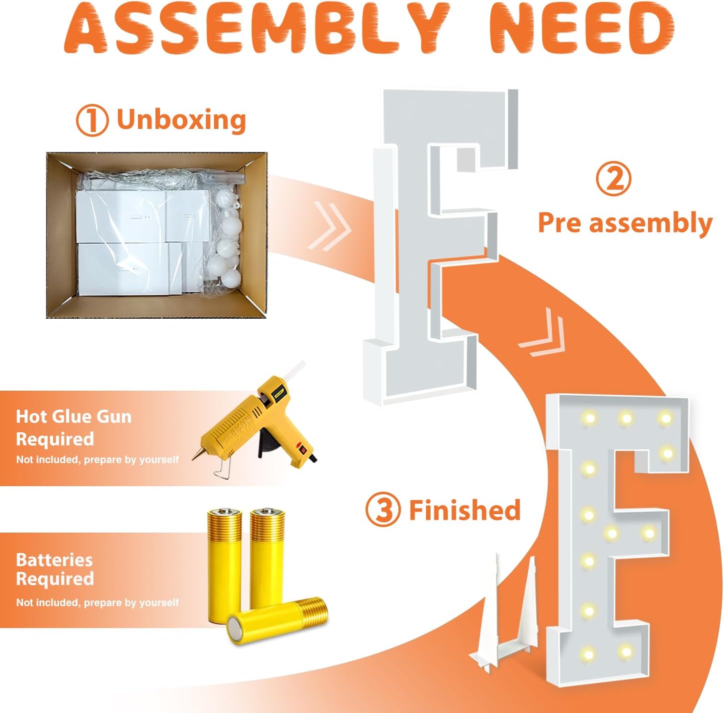 4 feet Marquee Letters, Light Up Letters F for Birthday Decorations, Big marquee letter lights for Party Decorations, Large Cardboard Letter for Anniversary Decor, Assembly Required