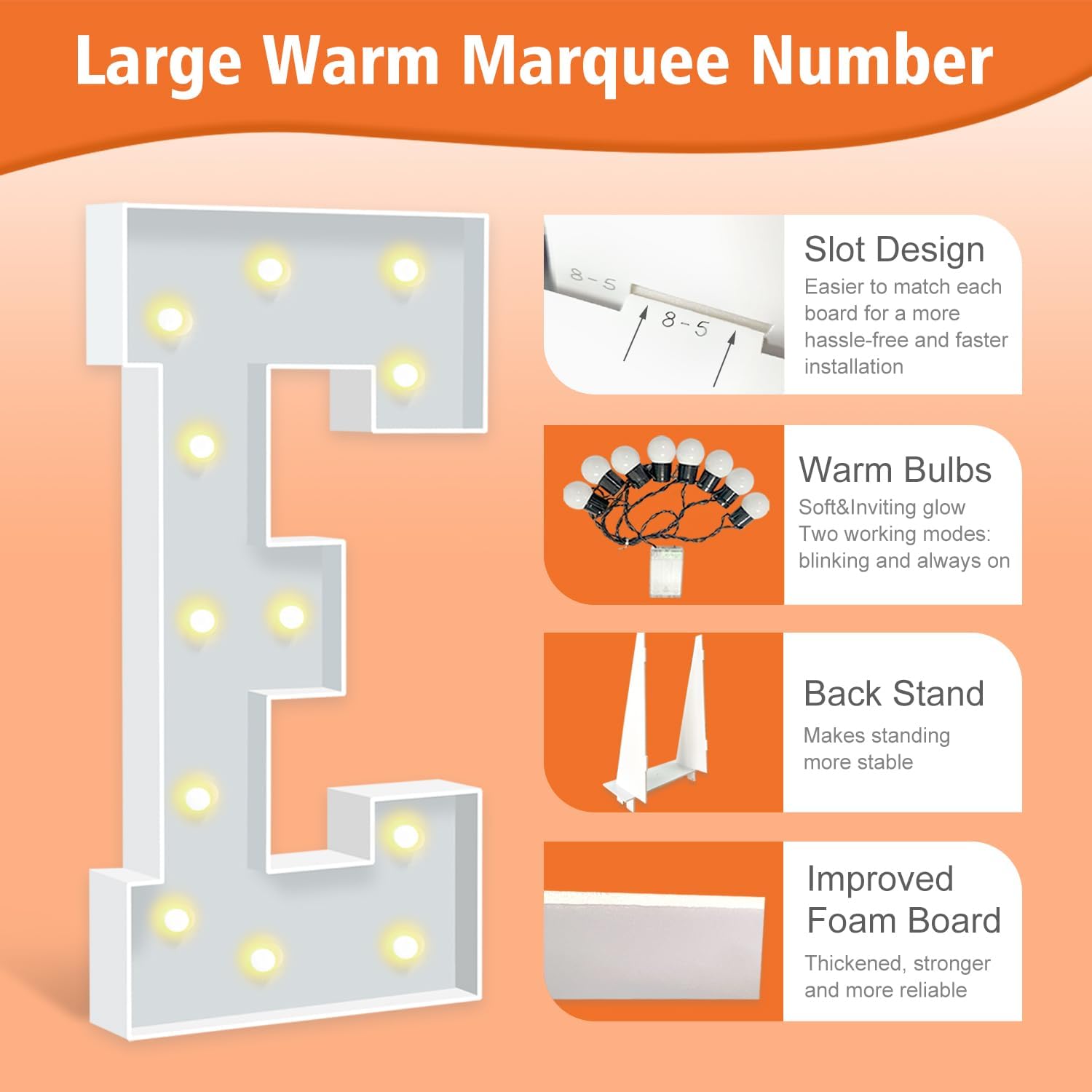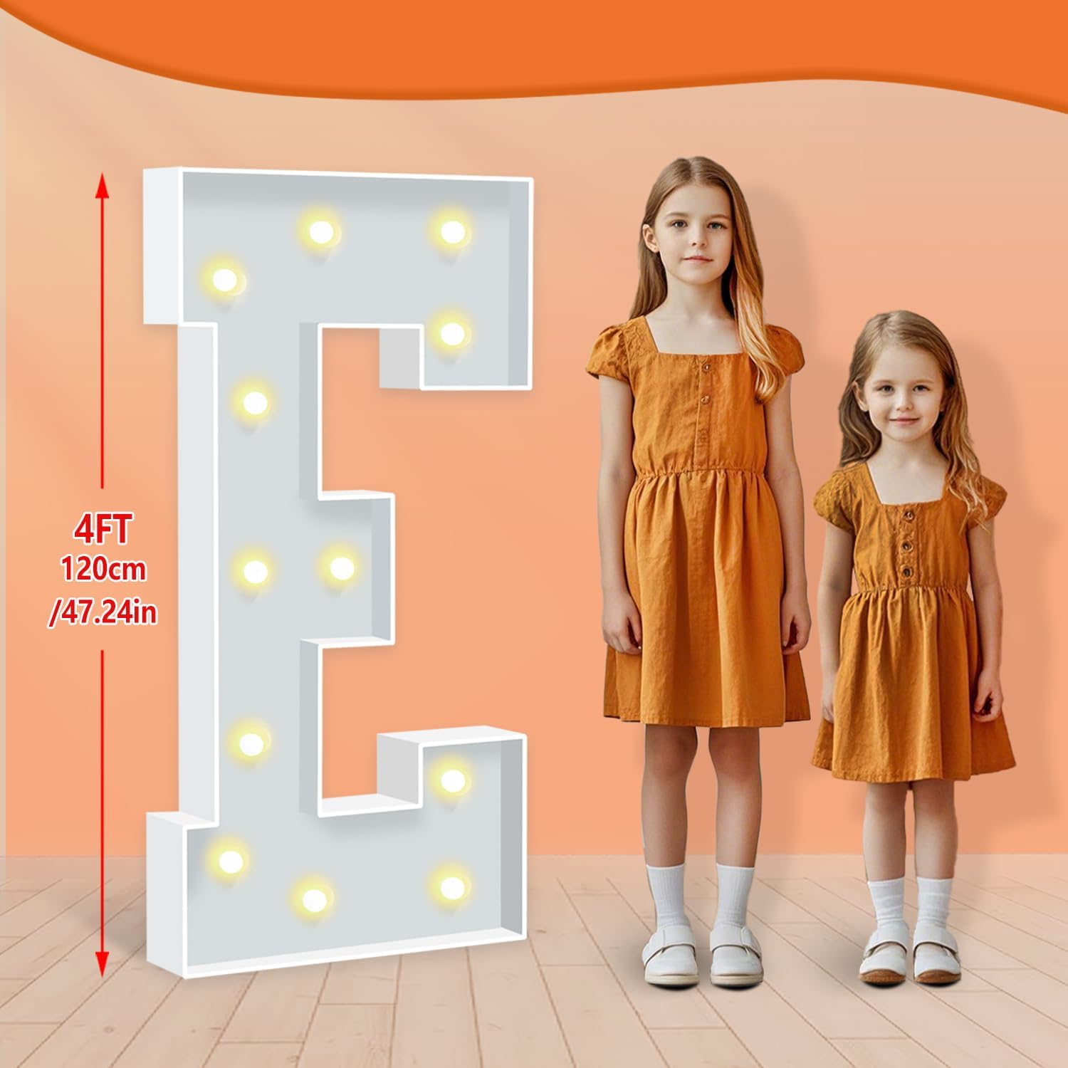 Marquee Light Up Letters E, 4FT Foam Board Mosaic Balloon Letters with Light Bulbs, Large Marquee Letter for Birthday Festival Party, Marry Me Light Up Letter for Wedding Engagement Party Decor