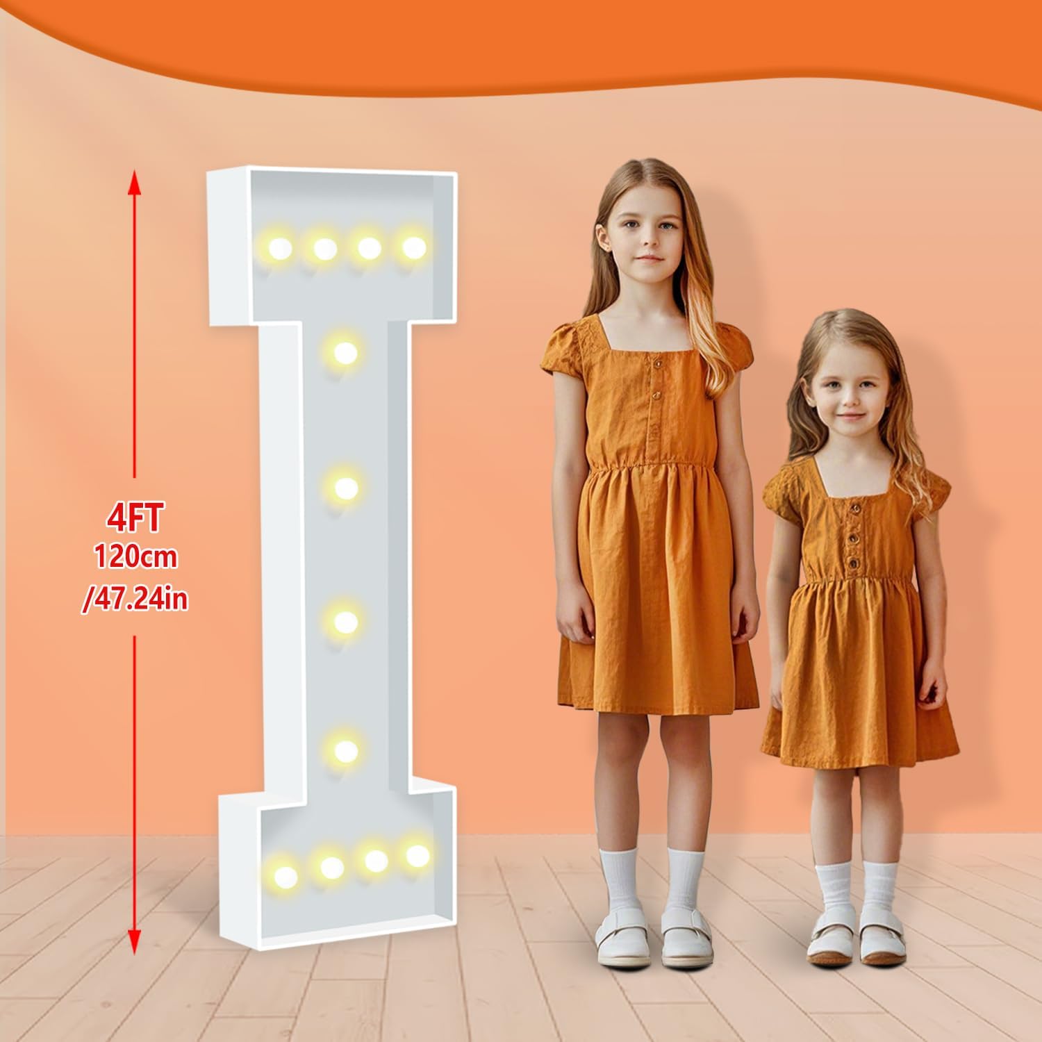 4ft Light Up Letters I, White Marquee Letters Frame for Boys Girls Birthday Party, Large Letter for Engagement Decorations Anniversary Decor, DIY Pre-Cut Thick Foam Board Letter