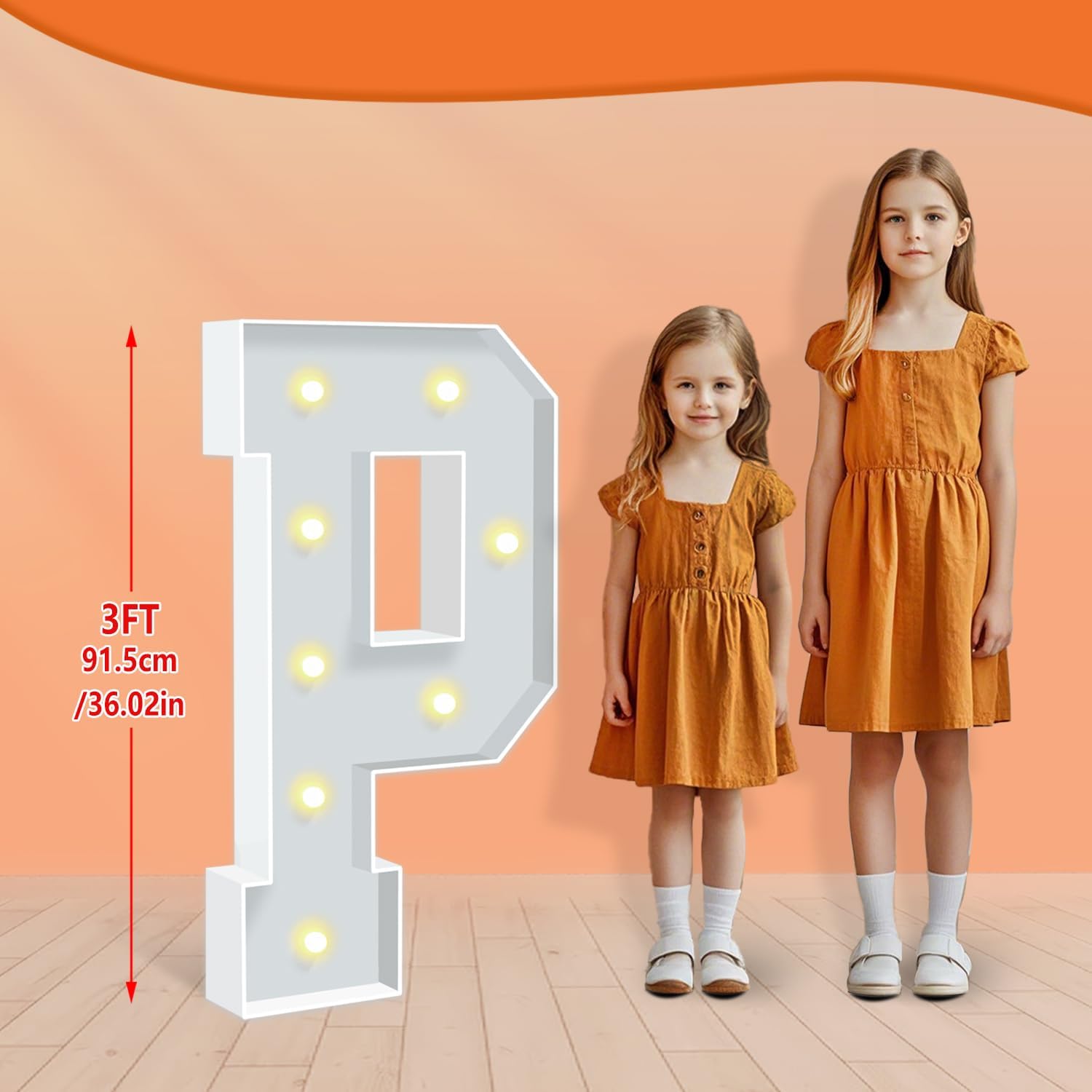 3FT Light Up Marquee Letters P, Large Lighted Letters for Party Backdrop Decor, Mosaic Cardboard Letter for Weddings, Birthdays, Anniversaries, New Year's Celebrations, Easy to Assemble