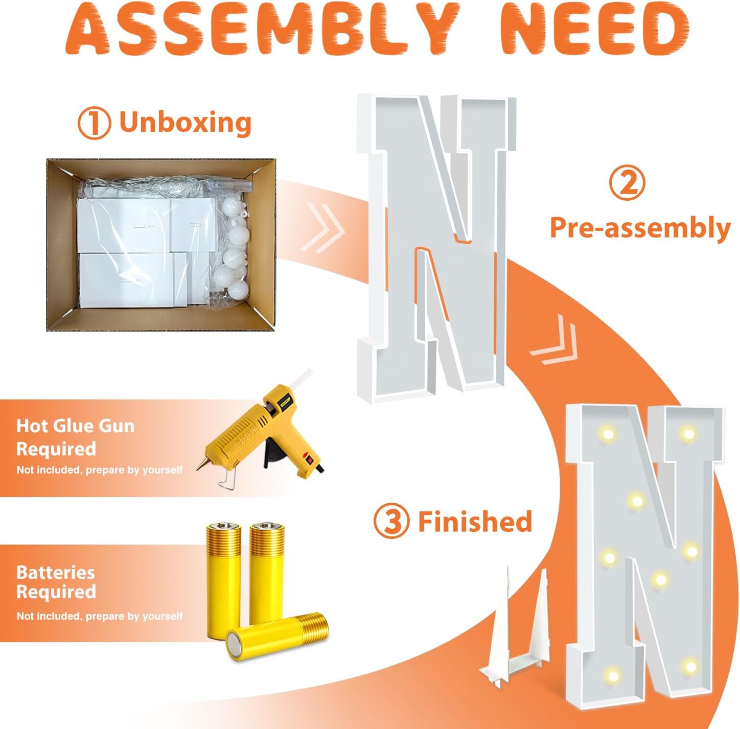 3FT Marquee Letter N, Block Marquee Light Up Letters for Birthday Baby Shower Party Backdrop Decor, Large Light Up Letters for Indoor & Outdoor Wedding Engagement Party Decorations
