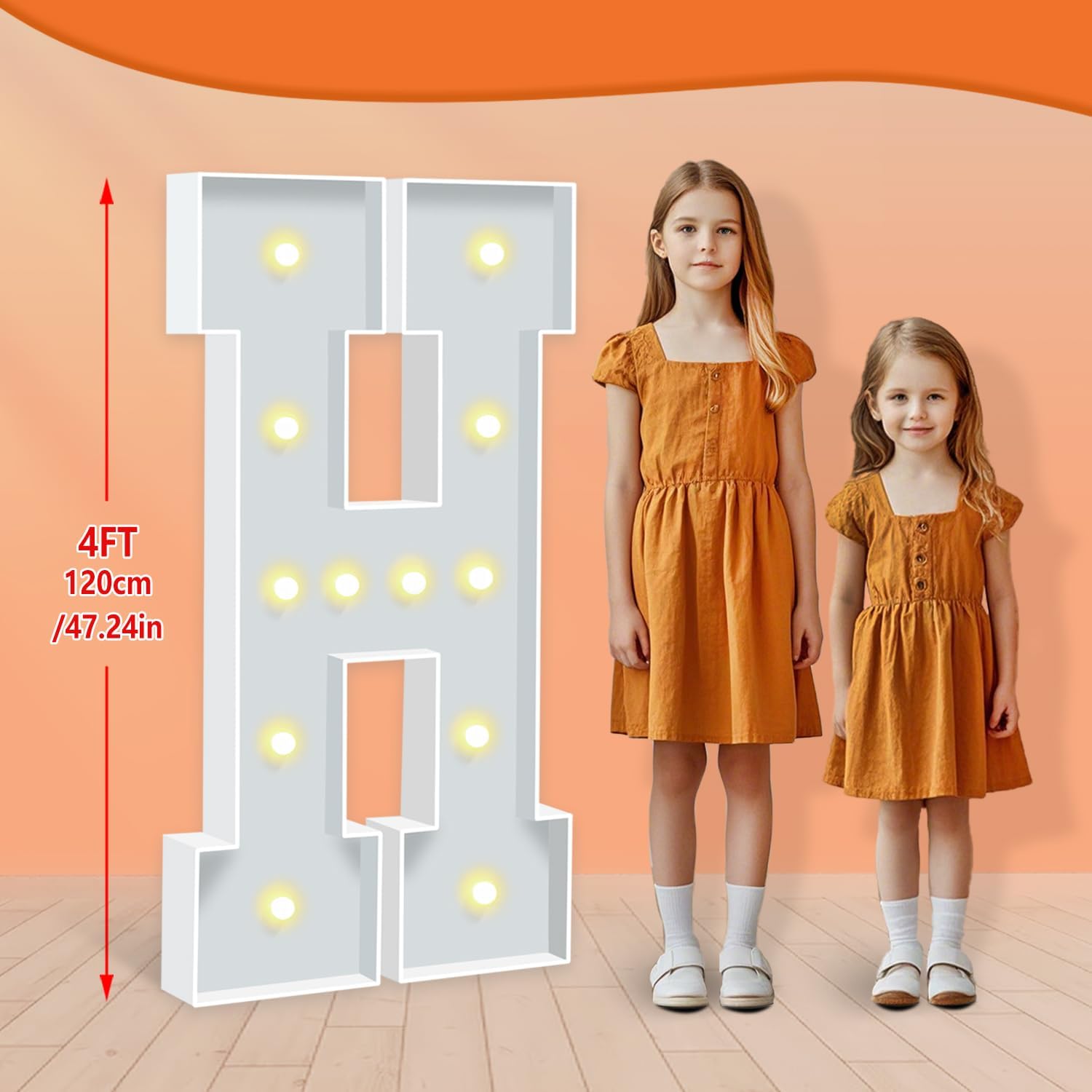4ft Marquee Letters H, Light Up Letters, A-Z Warm Yellow LED Light Up Sign for Happy Birthday, Graduation, Wedding, Engagement, Holiday Party Background Arch Decoration