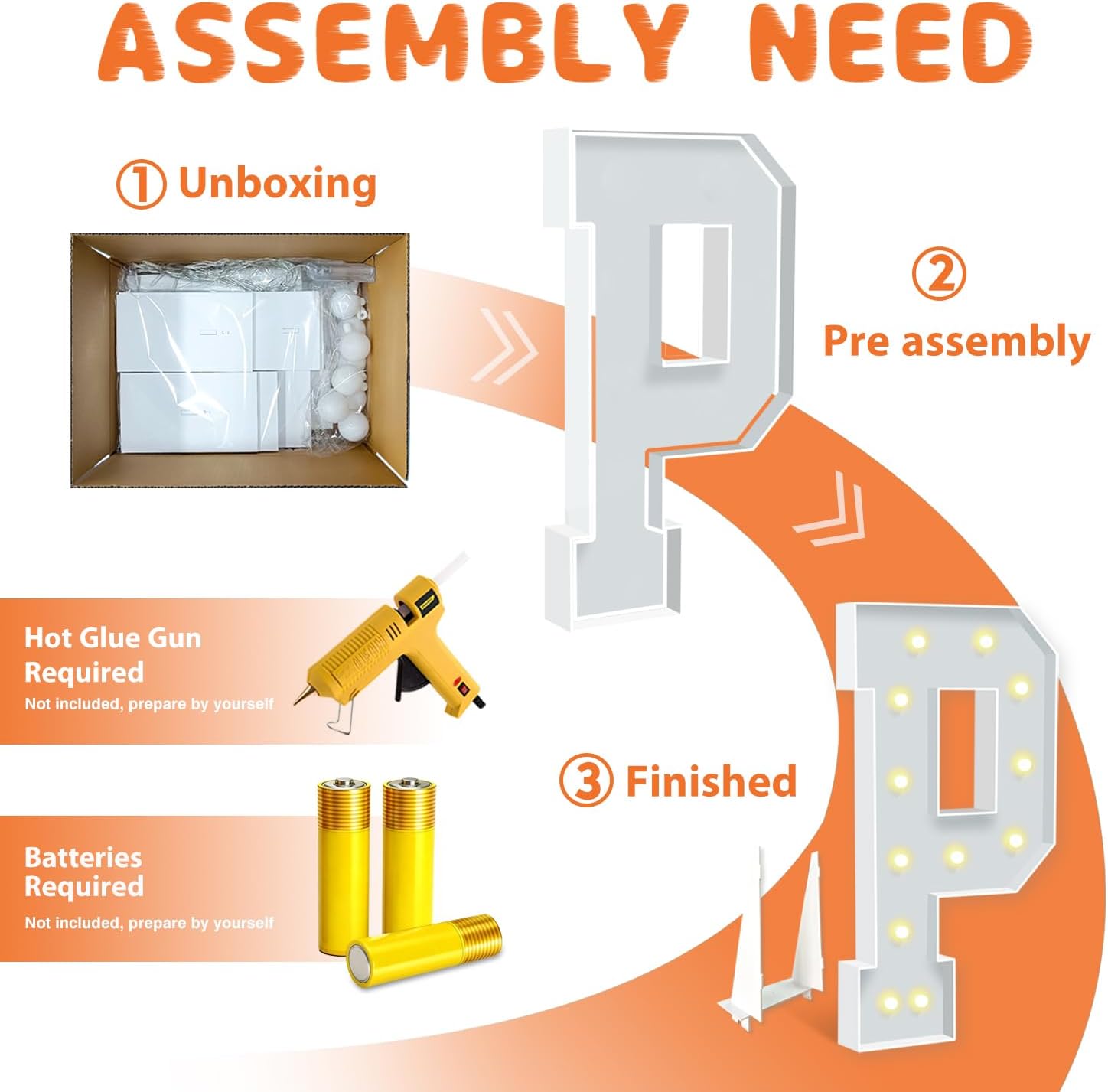 • EASY TO ASSEMBLE: The package includes pre-cut foam boards, light strings and instructions. Each foam board has slots and is numbered, so you can match them according to the 2 same numbers. All you need to do is to prepare a hot glue gun and 3 AA batteries, follow the step-by-step instructions or online video for a hassle-free assembly. Decorate the party with your kids or friends and enjoy the DIY fun. (Note: Glue gun, glue and batteries are not included)