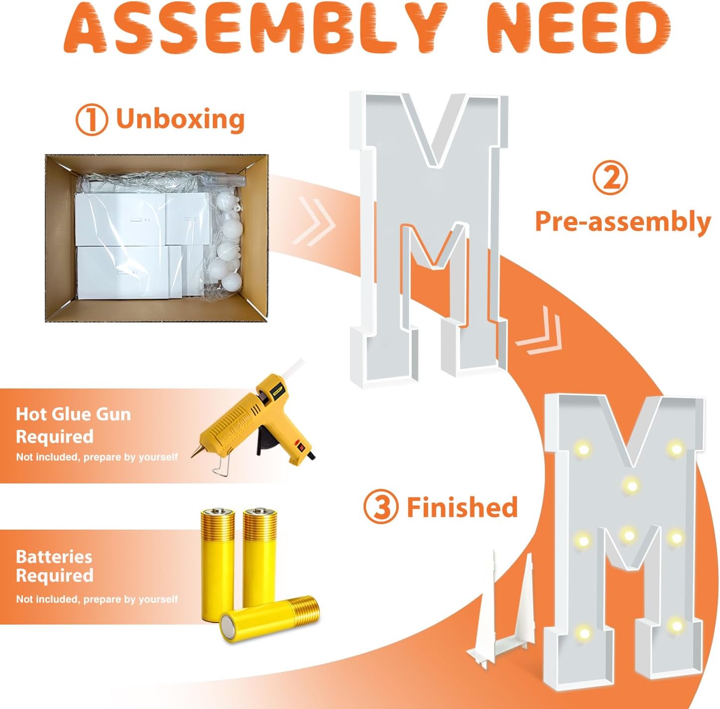 • EASY TO ASSEMBLE: The package includes pre-cut foam boards, light strings and instructions. Each foam board has slots and is numbered, so you can match them according to the 2 same numbers. All you need to do is to prepare a hot glue gun and 3 AA batteries, follow the step-by-step instructions or online video for a hassle-free assembly. Decorate the party with your kids or friends and enjoy the DIY fun. (Note: Glue gun, glue and batteries are not included)
