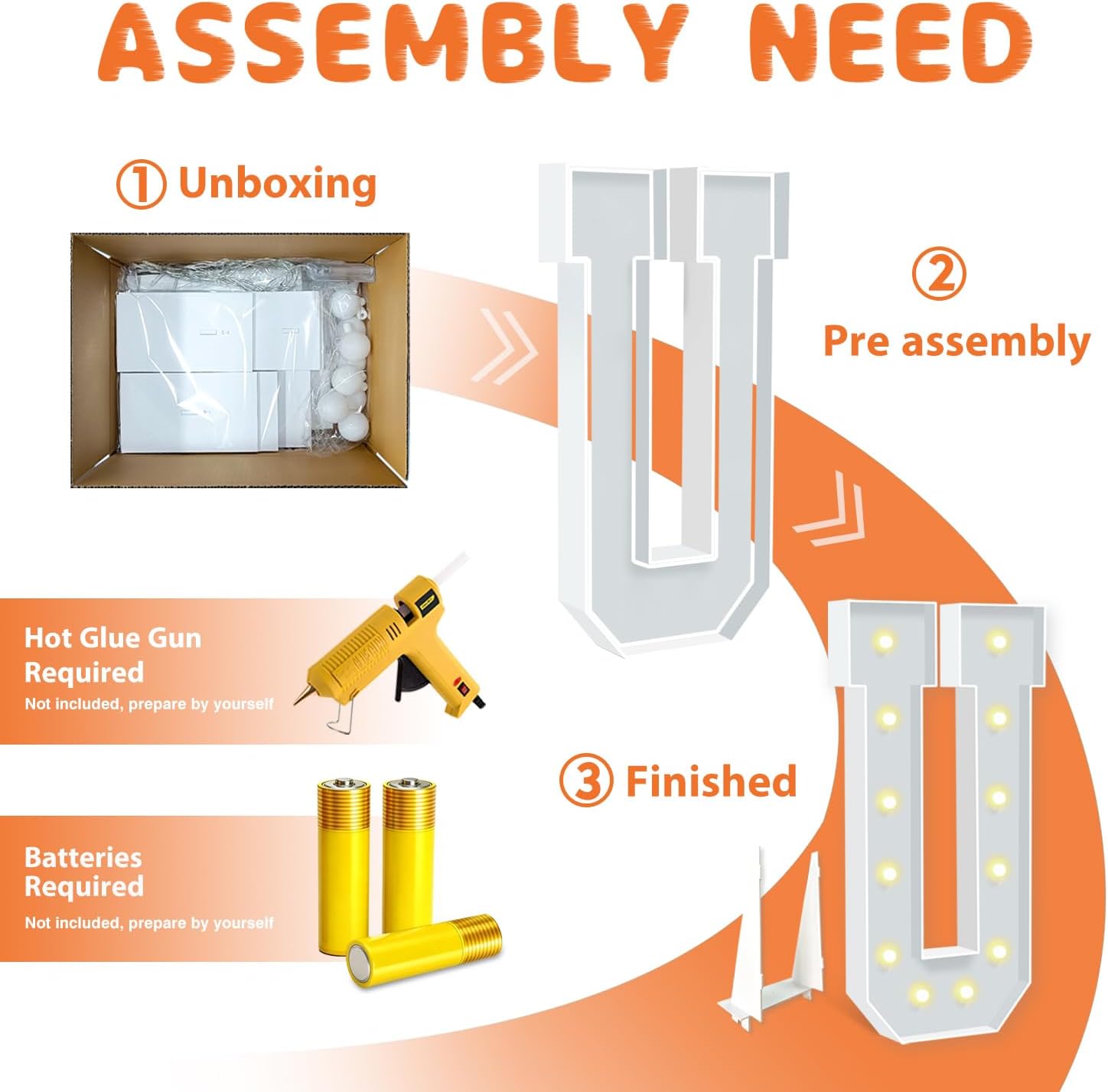 • EASY TO ASSEMBLE: The package includes pre-cut foam boards, light strings and instructions. Each foam board has slots and is numbered, so you can match them according to the 2 same numbers. All you need to do is to prepare a hot glue gun and 3 AA batteries, follow the step-by-step instructions or online video for a hassle-free assembly. Decorate the party with your kids or friends and enjoy the DIY fun. (Note: Glue gun, glue and batteries are not included)
