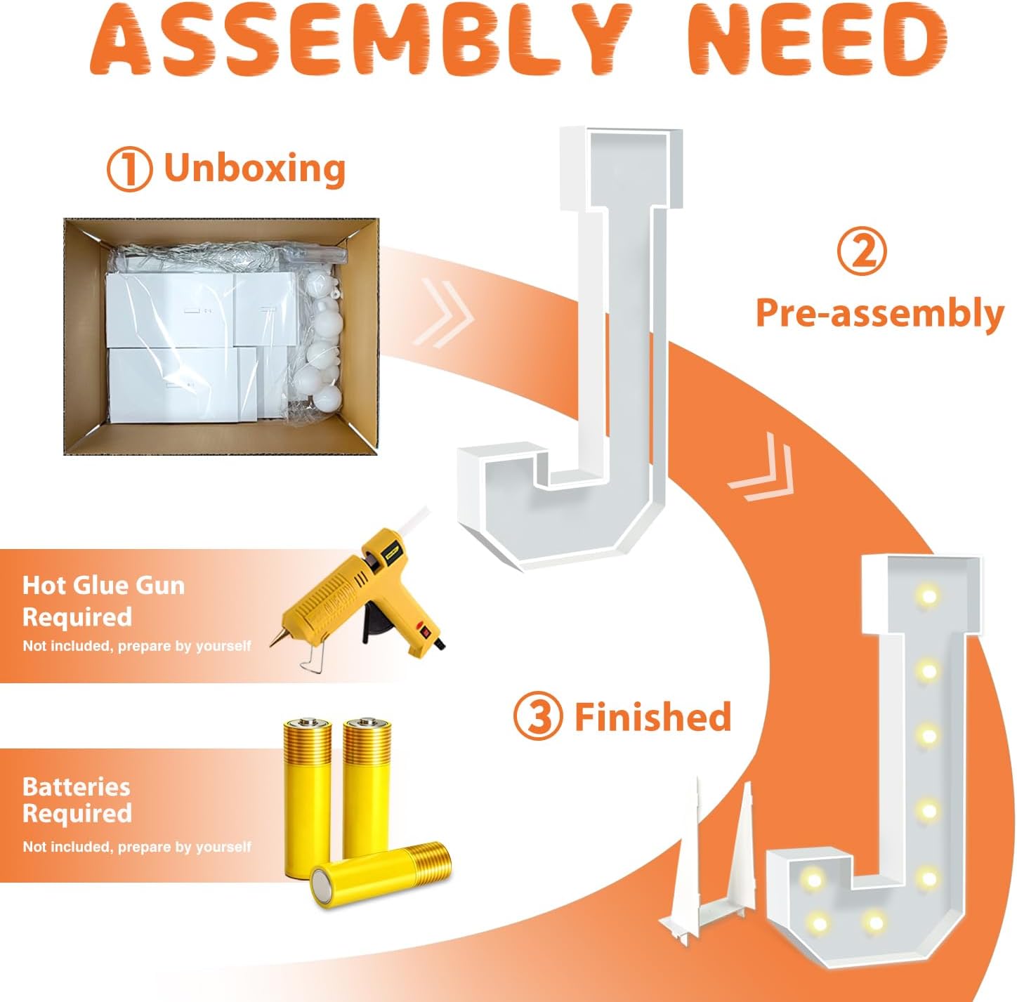 • EASY TO ASSEMBLE: The package includes pre-cut foam boards, light strings and instructions. Each foam board has slots and is numbered, so you can match them according to the 2 same numbers. All you need to do is to prepare a hot glue gun and 3 AA batteries, follow the step-by-step instructions or online video for a hassle-free assembly. Decorate the party with your kids or friends and enjoy the DIY fun. (Note: Glue gun, glue and batteries are not included)