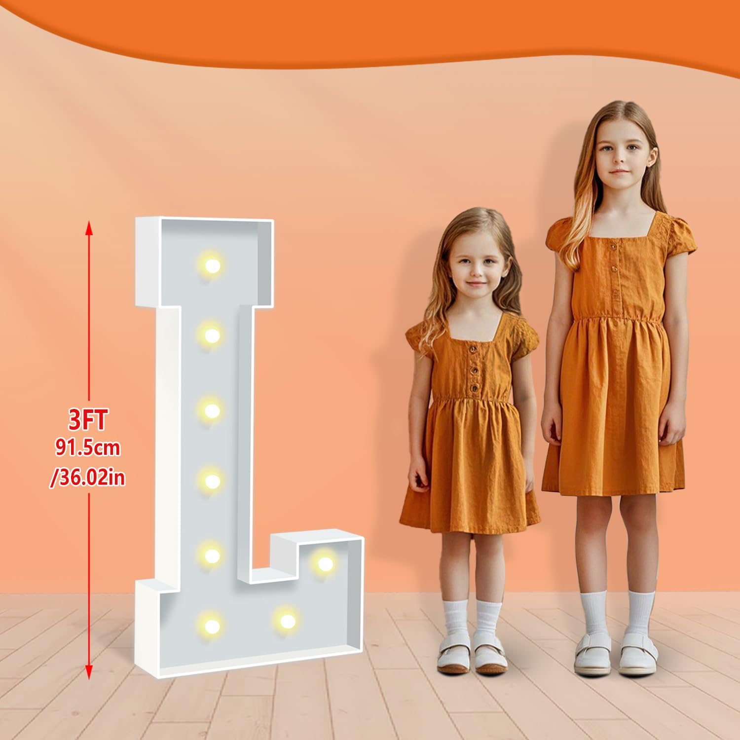 3FT Marquee Light Up Letters L, Marquee Letters for Birthday Baby Shower Wedding Decorations, Light Up Letter for Engagement Party LOVE Decor Holiday Party Decorations