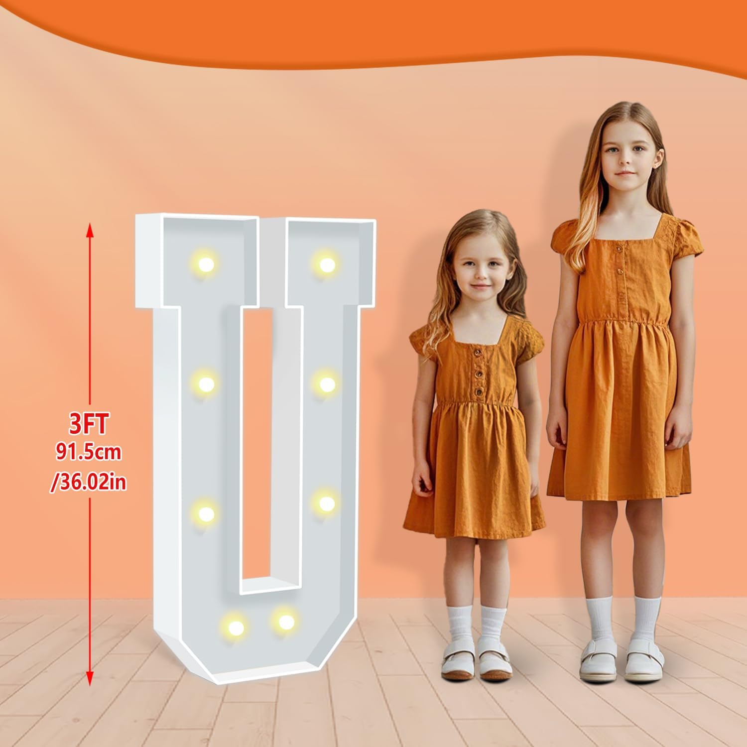 3FT Marquee Light Up Letters, 3 Feet Tall Warm White LED Letters U, Large Mosaic Marquee Letter for Birthday Wedding Anniversary, Marquee Light Up Letter Sign for Graduation Party Decoration