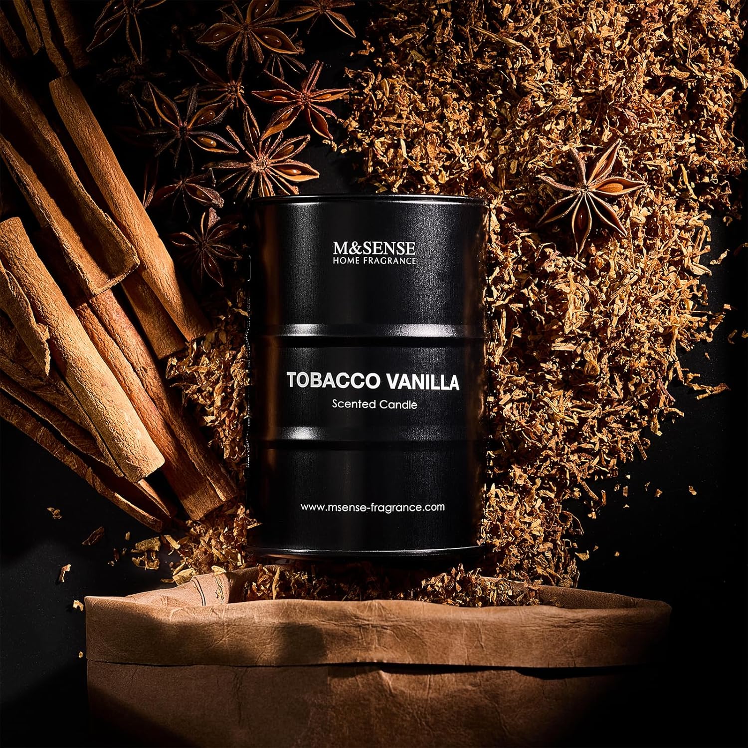 M&SENSE Scented Candle, Tobacco Vanilla Medium Jar Candle Gifts for Men, 70 Hours Slow Burning Natural Soy Candles 11.3oz, Stress Relief Aromatherapy Candles Home Decor, Valentines Day Gifts for Him