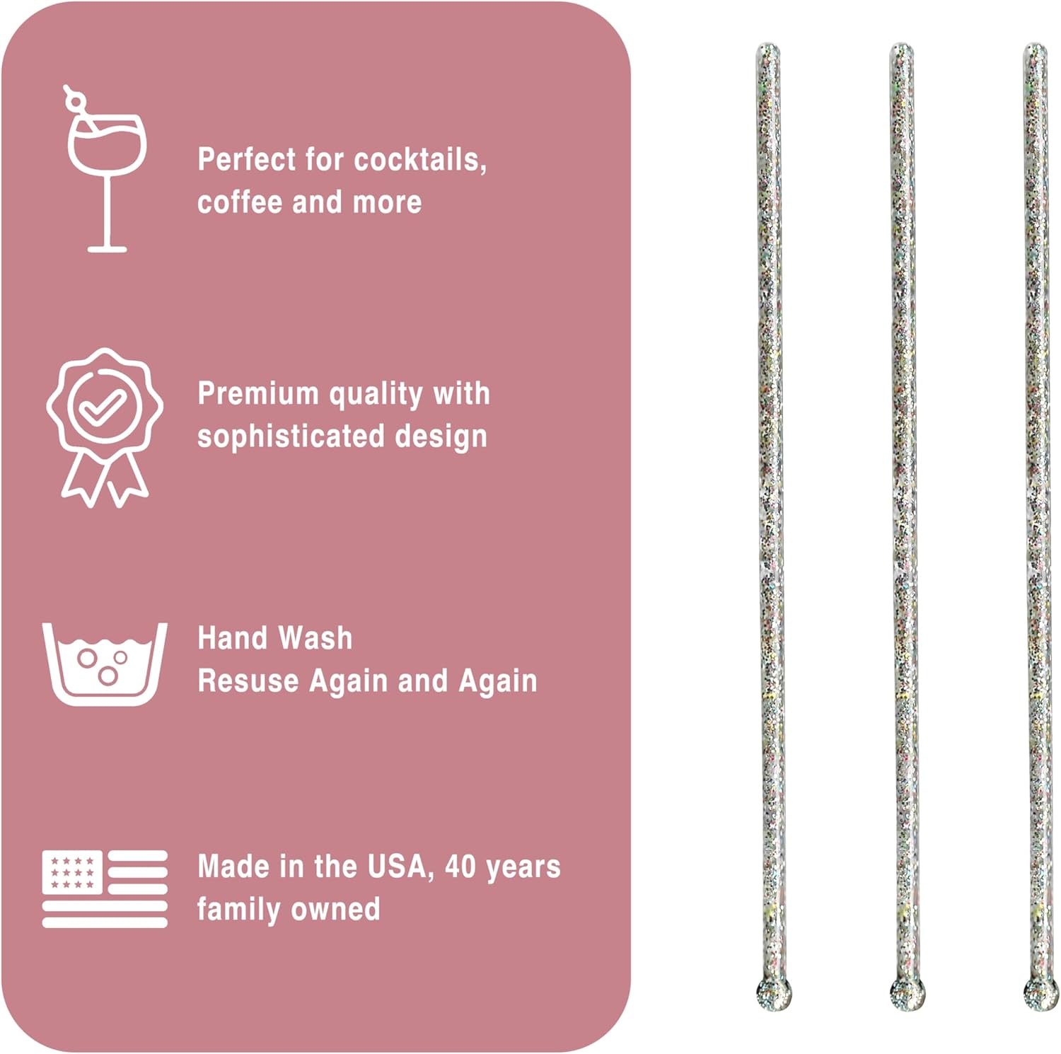 • Durable and Reusable: Crafted with long-lasting materials, these glitter sticks are sturdy and reusable, so you can enjoy them at countless gatherings. No more wasteful disposable stirrers—these durable, eco-friendly party drink essentials will sparkle in your drinks for years to come, perfect for rainbow parties, pride events, and any celebration that needs a little extra flair.