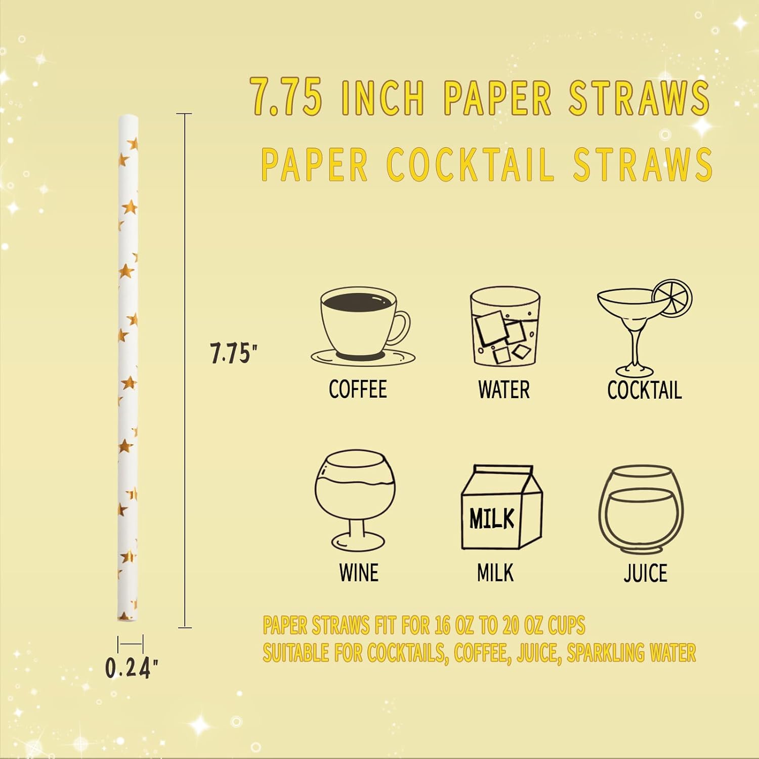 • Perfect Size: 197mm in length and 6mm in diameter (7.75" x 0.24"), these straws are ideal for most standard cups, including those holding beverages between 8 oz and 24 oz