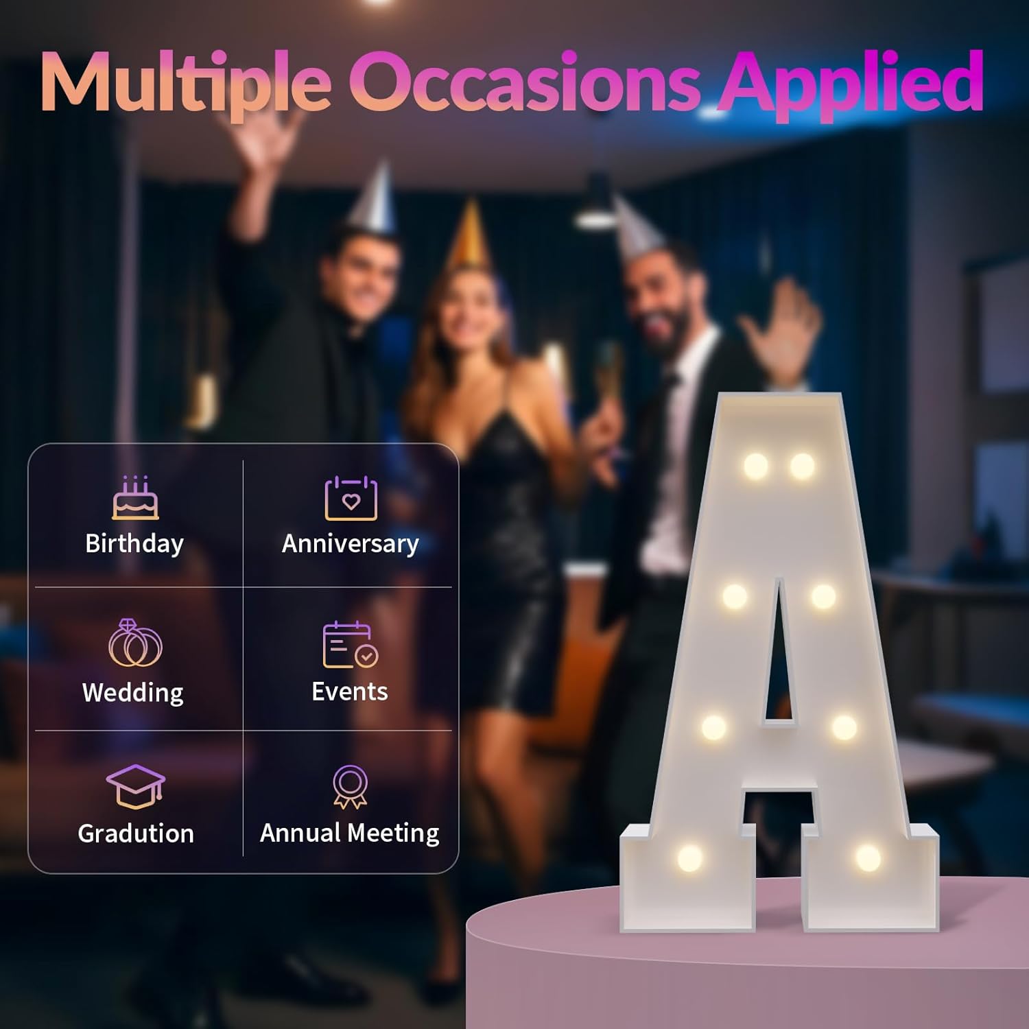 • Lighted Letters for Event Decoration: Brighten your celebrations with stunning marquee letters.Perfect for baby showers, birthdays, graduations, anniversaries, and proposals, they enhance your event’s atmosphere while adding a personal touch.