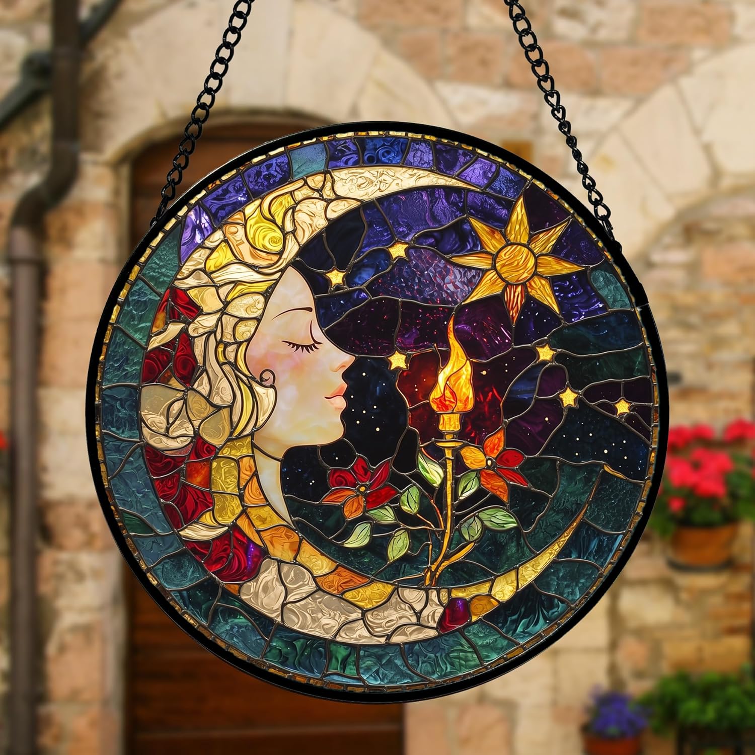 Stained Glass Window Hanging, Moon Goddess Torch Suncatcher Diamond Glass Panel Hangings Dream Sun Catchers Decor for Birthday for Women, Men, Wife, Aunt, and Mom 9.8 in