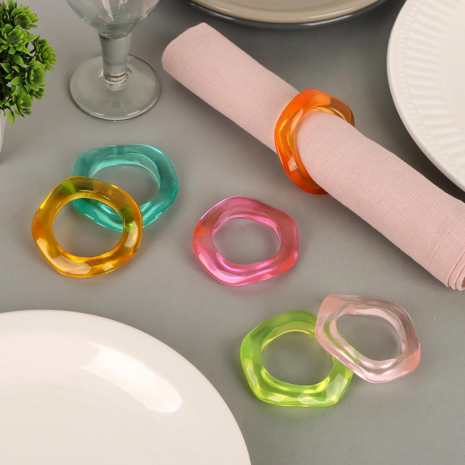 • ✅ COMPACT SIZE FOR TABLE SETTINGS: Includes 12 handcrafted epoxy resin napkin rings, each precisely sized at 2.5 x 2.5 x 0.5 inches. Perfect for standard cloth napkins, these rings enhance your table’s appearance with balance, elegance, and uniformity across every place setting.