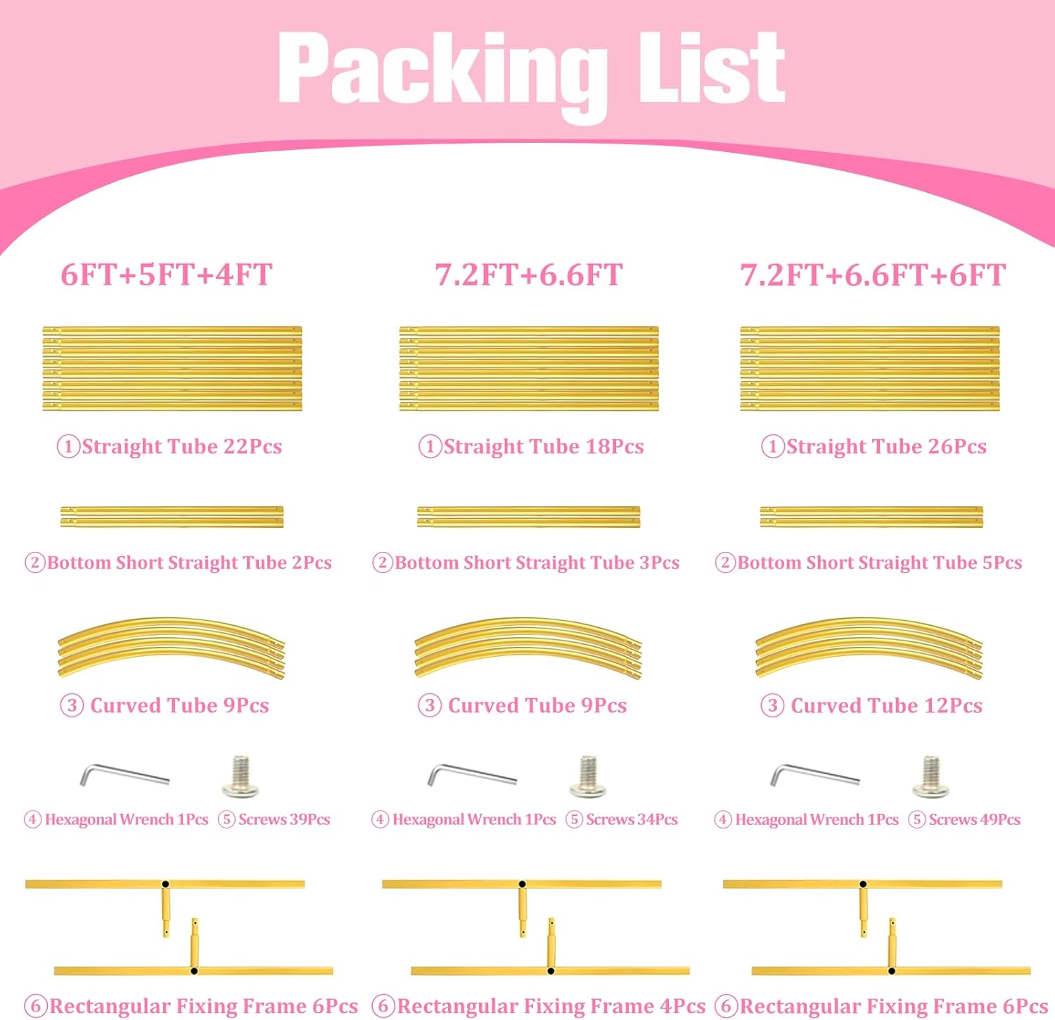 • 【Wedding Arch Stand Set】2 Pieces wedding arch set perfectly matched with two sizes, for meeting your different needs. The three sizes measures 7.2x4FT (HxW) and 6.6x3.3FT (HxW). You can combine the decoration changes according to the actual situation of the party, flexible and free collocation.