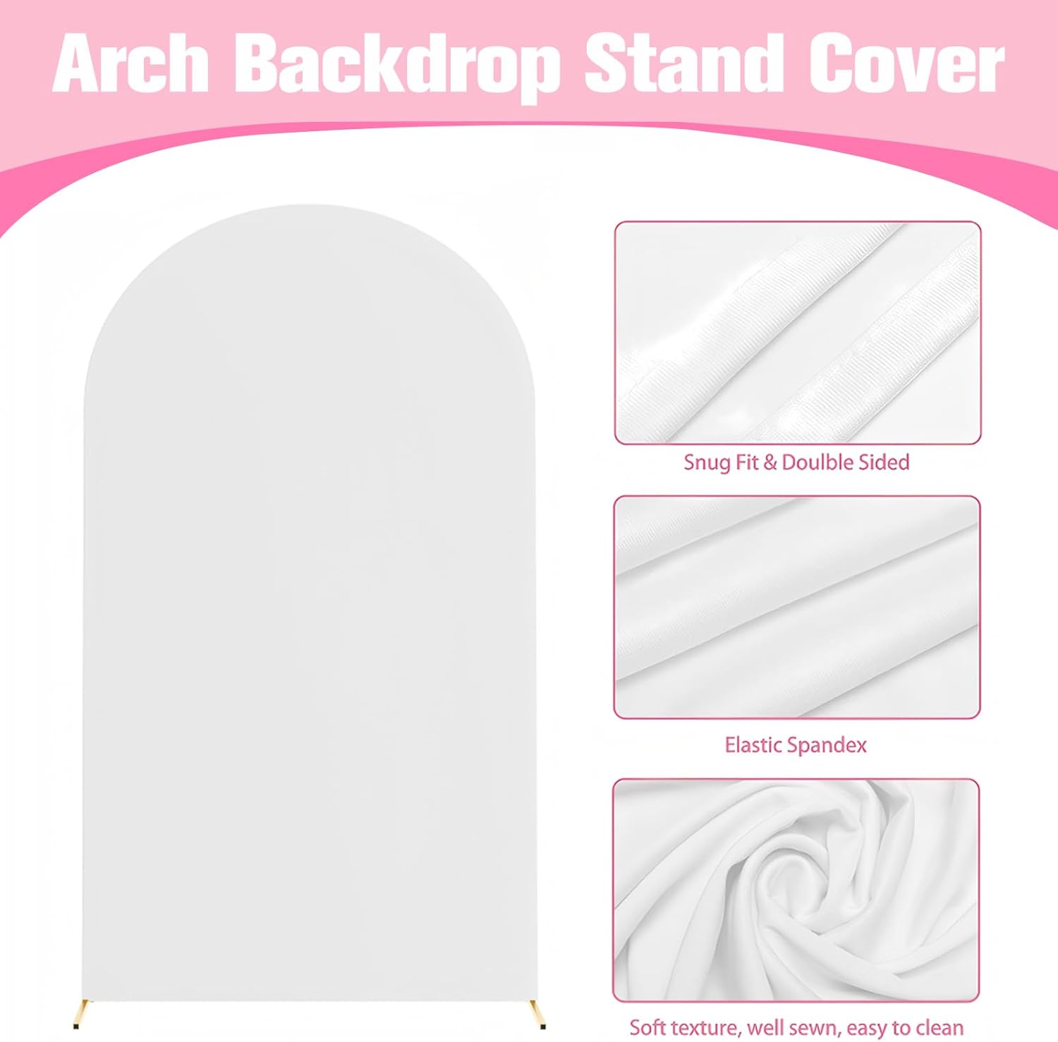 Bazen Wedding Arch Backdrop Stand 7.2FT, 6.6FT, 6FT Set of 3 Metal Arch Backdrop Stand with White Arch Cover for Birthday Party Wedding Ceremony Bridal Baby Shower Banquet Party Event Decor