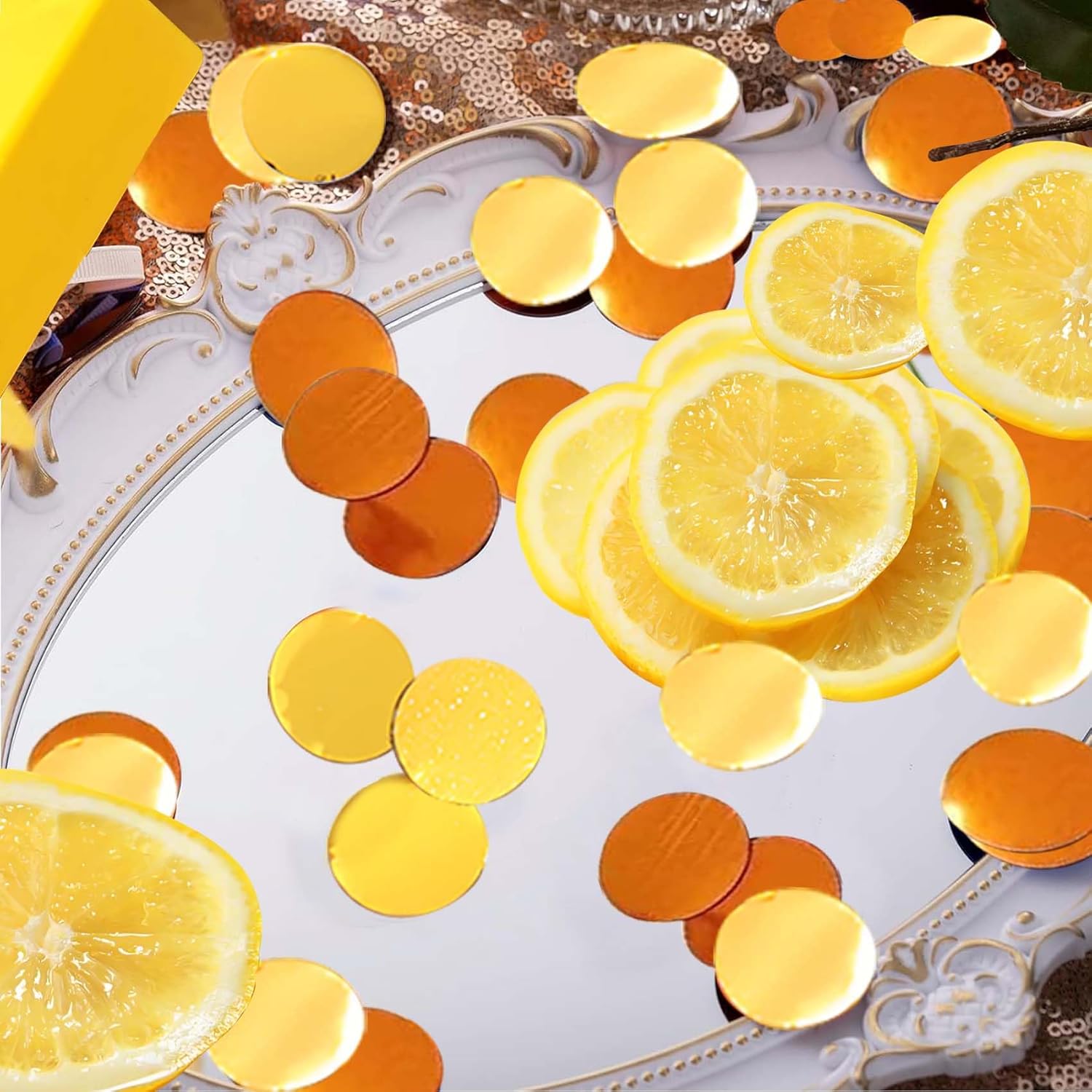 • Package: 100g Orange and gold round dot metallic confetti and sufficient quantity to use for your many times