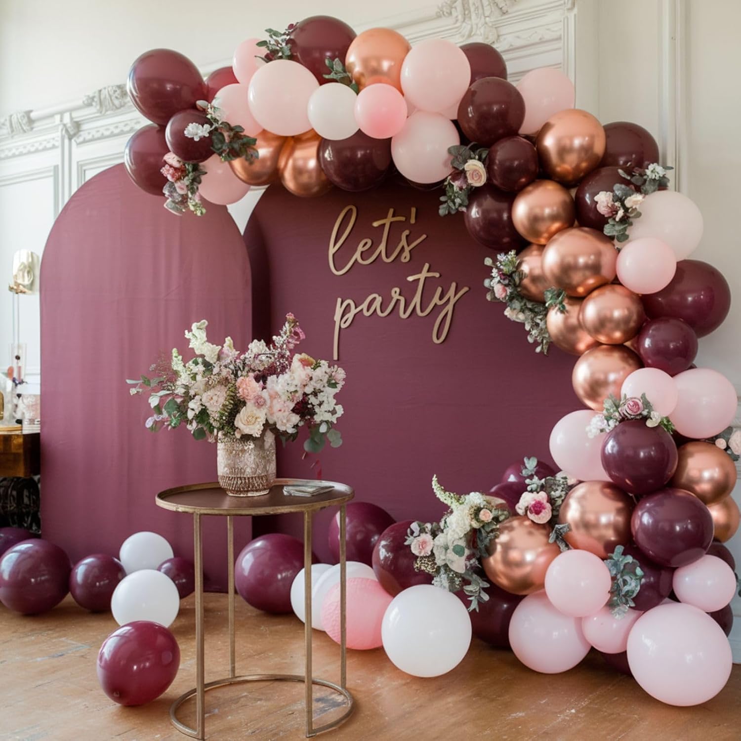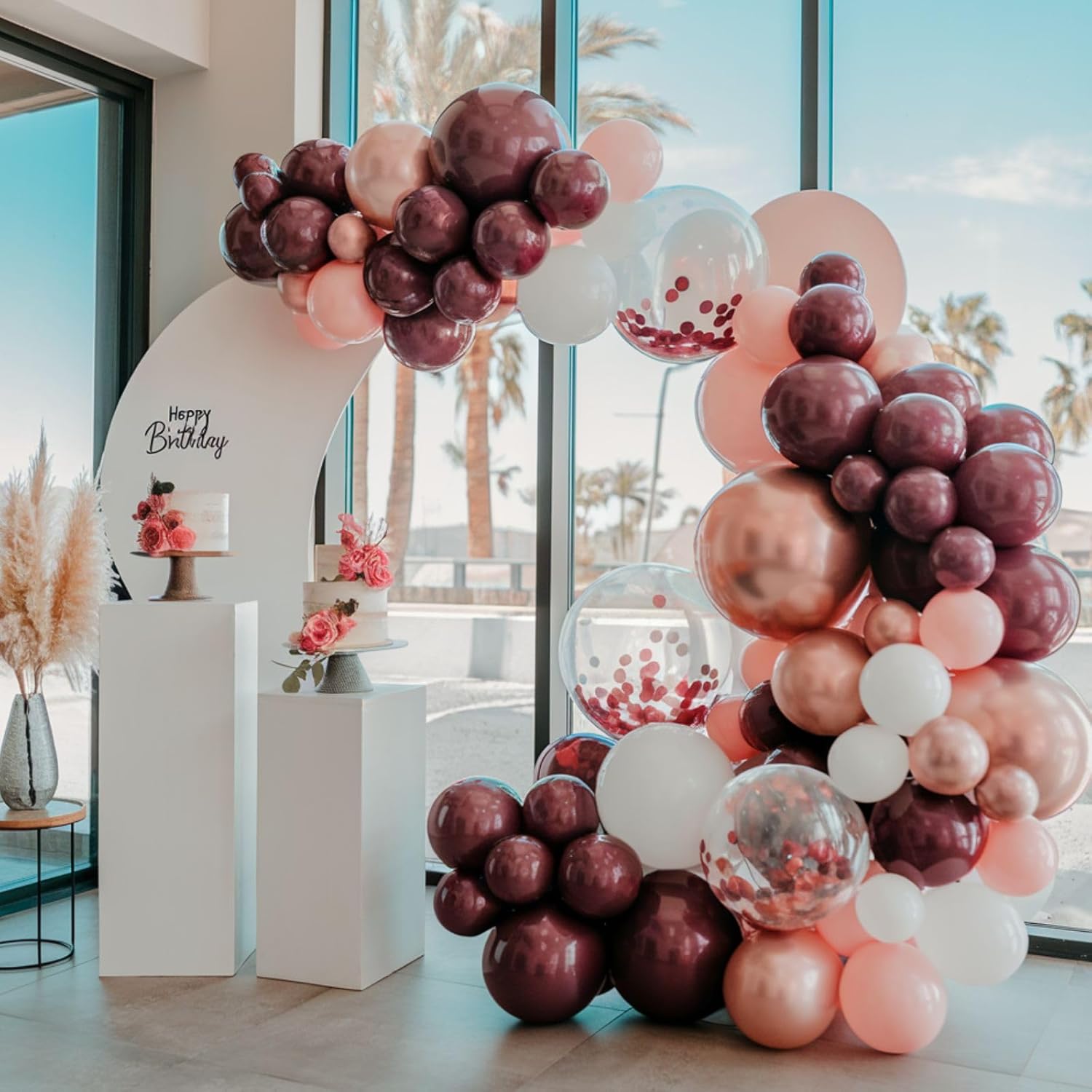 • Quick and Easy to Set Up: No stress, no hassle! Whether you're a seasoned party planner or this is your first time hosting, you'll love how easy it is to inflate and arrange these wine red and rose gold balloons. With simple setup, you’ll have more time to enjoy the party and less time worrying about party decorations.