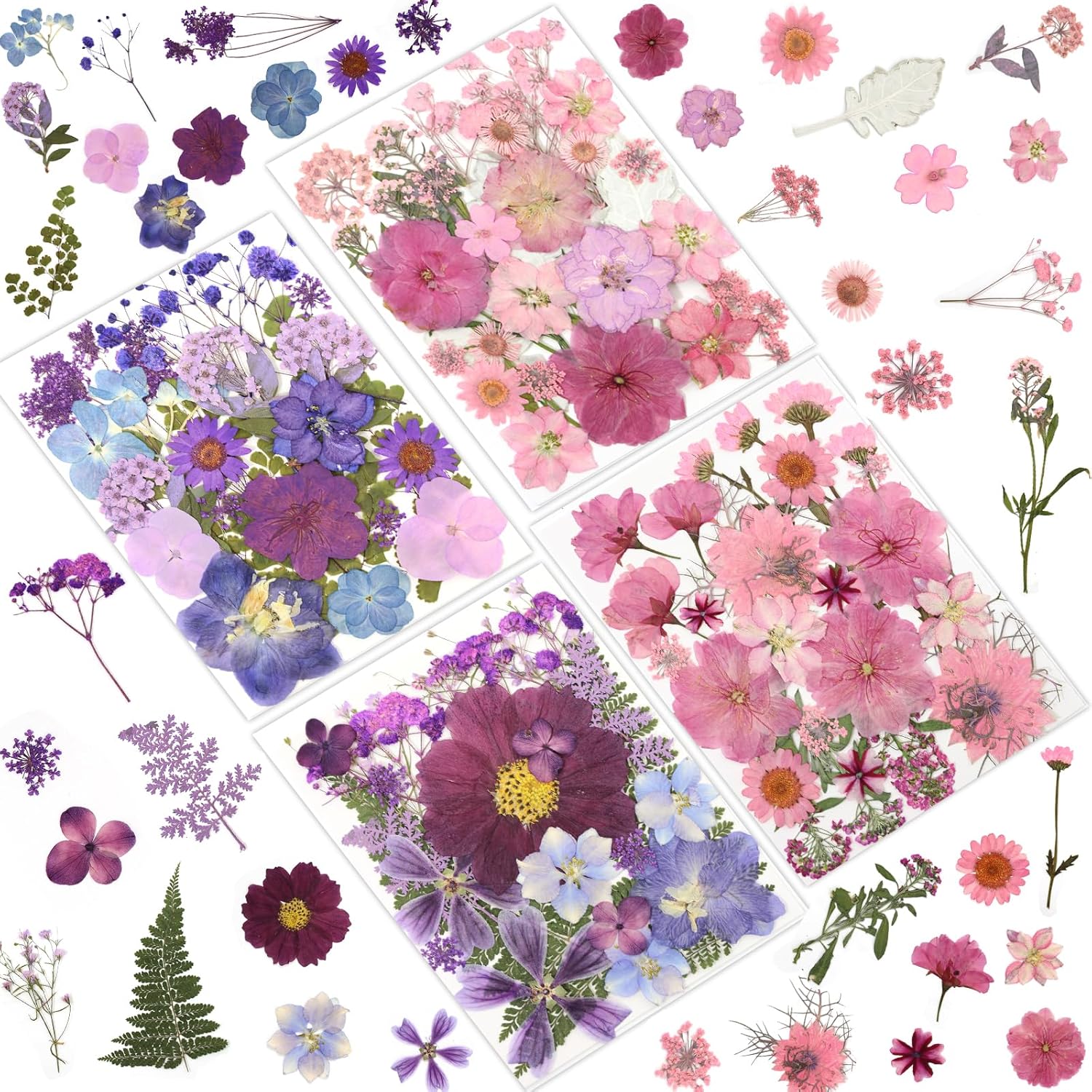 • Vibrant Pressed Botanicals: 100 Pcs preserved pressed flowers with fade-resistant pink/purple/blue hues. Industrially dehydrated & stabilized, these non-perishable botanicals maintain color integrity for resin art and DIY crafts