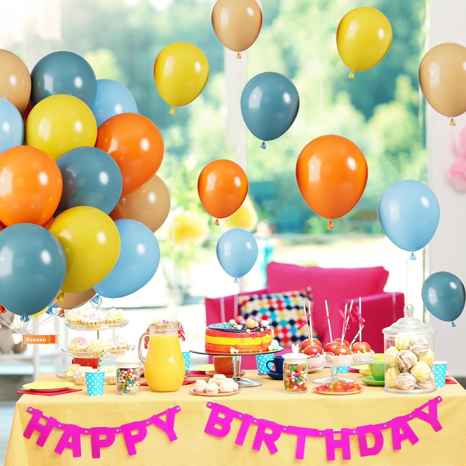 Blue Yellow and Orange Balloons, 12 Inch Retro Sea Blue Yellow Orange Balloons, Latex Helium Balloon for Boys Birthday Baby Shower Boho Son Theme Decorations