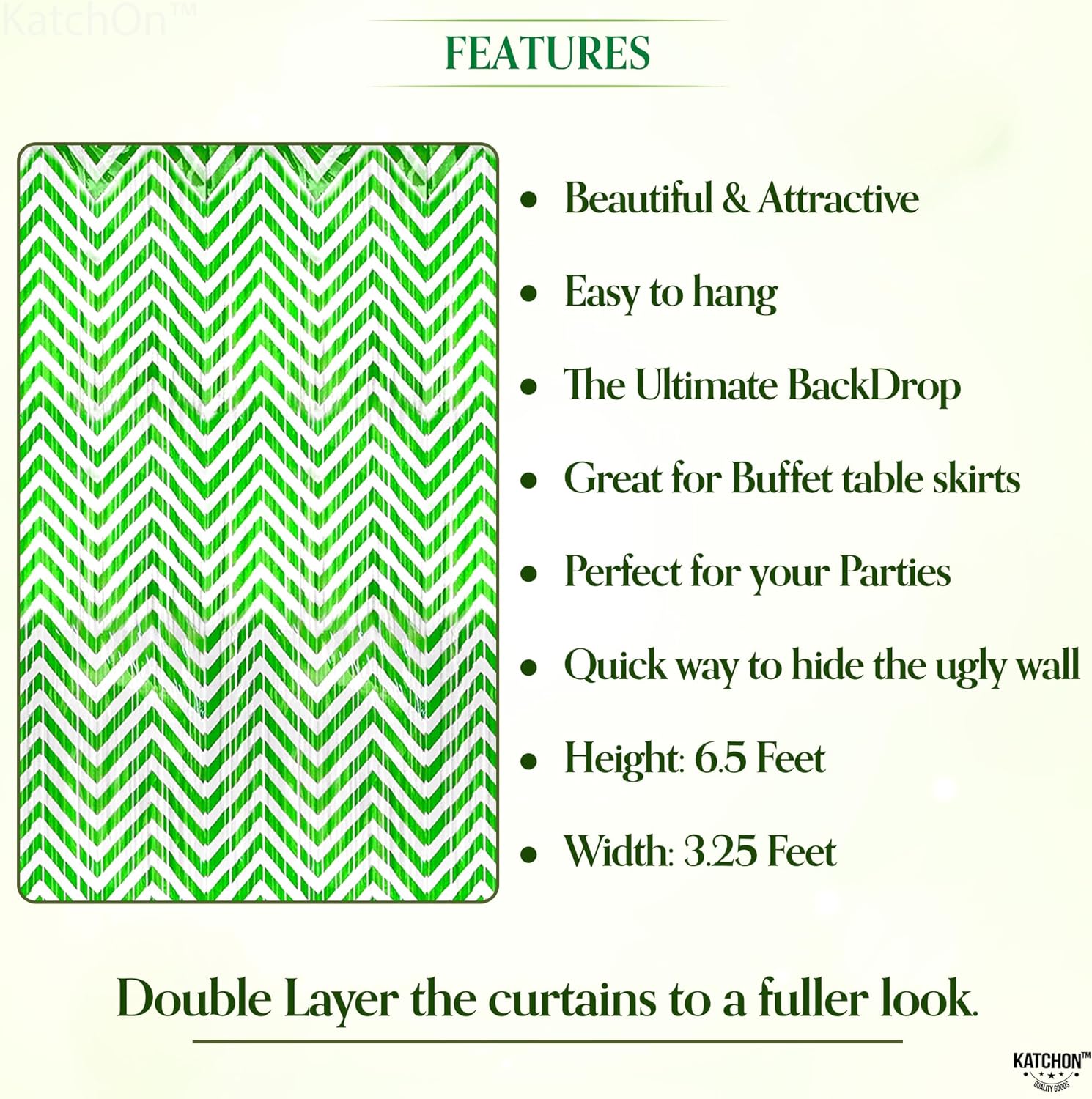 KatchOn, Green and White Foil Fringe Curtains - 6.5x6.5 Feet | Green Foil Fringe Curtain for Green and White Party Decorations, Graduation Decorations 2025 | Forest Green Birthday Decoration