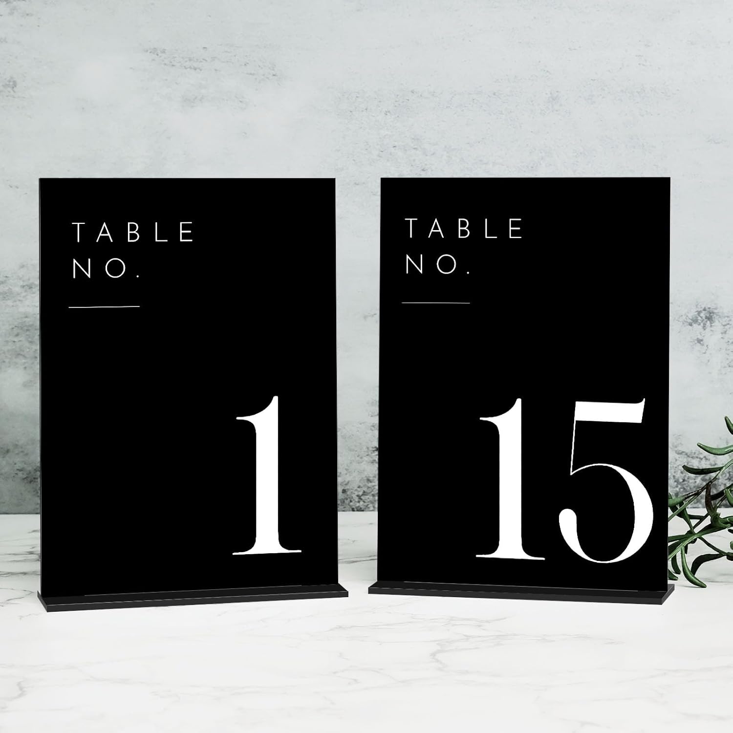 • PREMIUM QUALITY: These black acrylic table numbers with holders are made from high quality black acrylic panels and then printed with white letters in a simple arch design that won't go out of style and will last a long time.