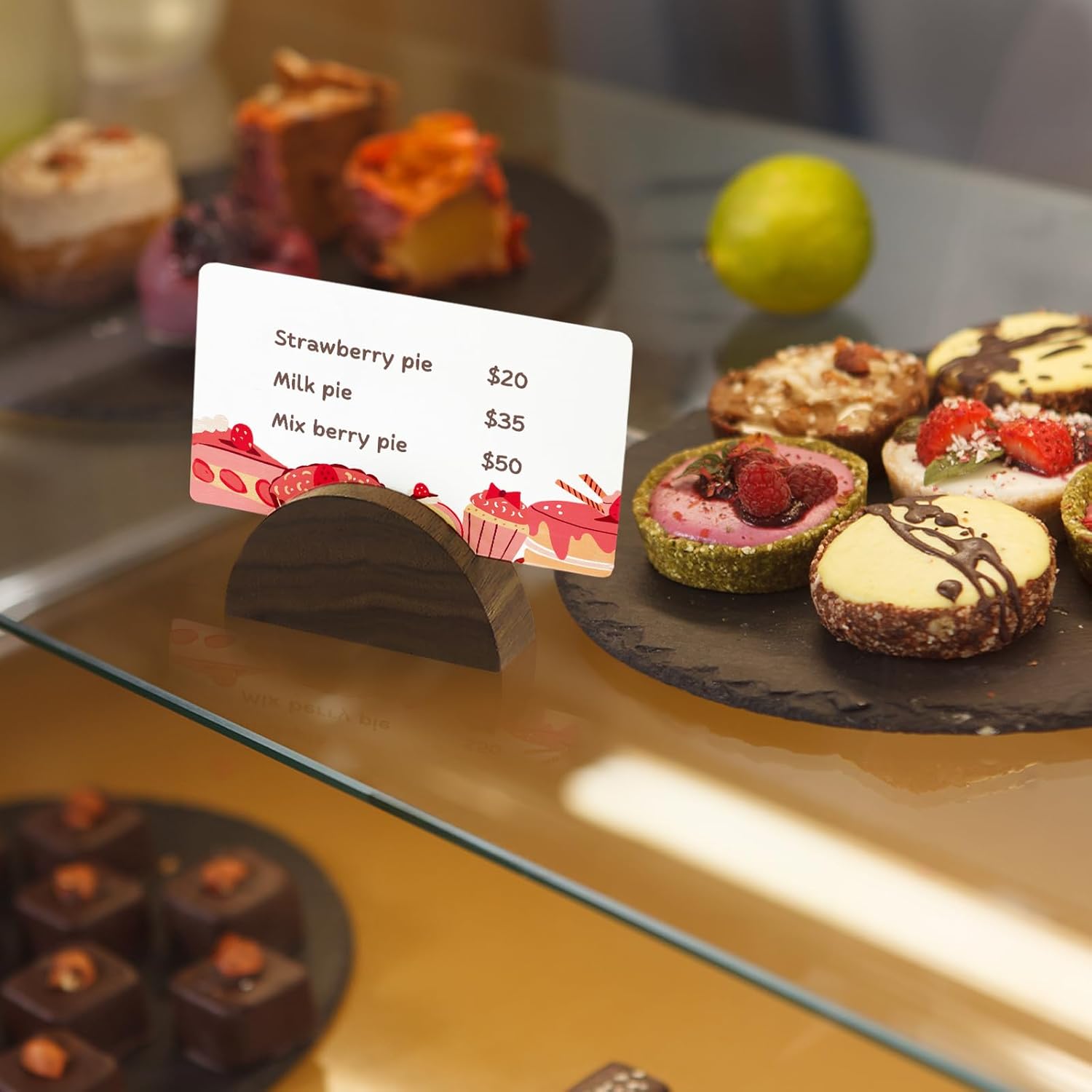 UNIQOOO 10 Set 2" Arch Walnut Wood Stand with Cards |1.2mm Slot, for Name Cards, Place Card Holder, Photo Display Stand | for Event Decor, Retail Shop, Cafe Restaurant Menu, Business Card, Name Tag