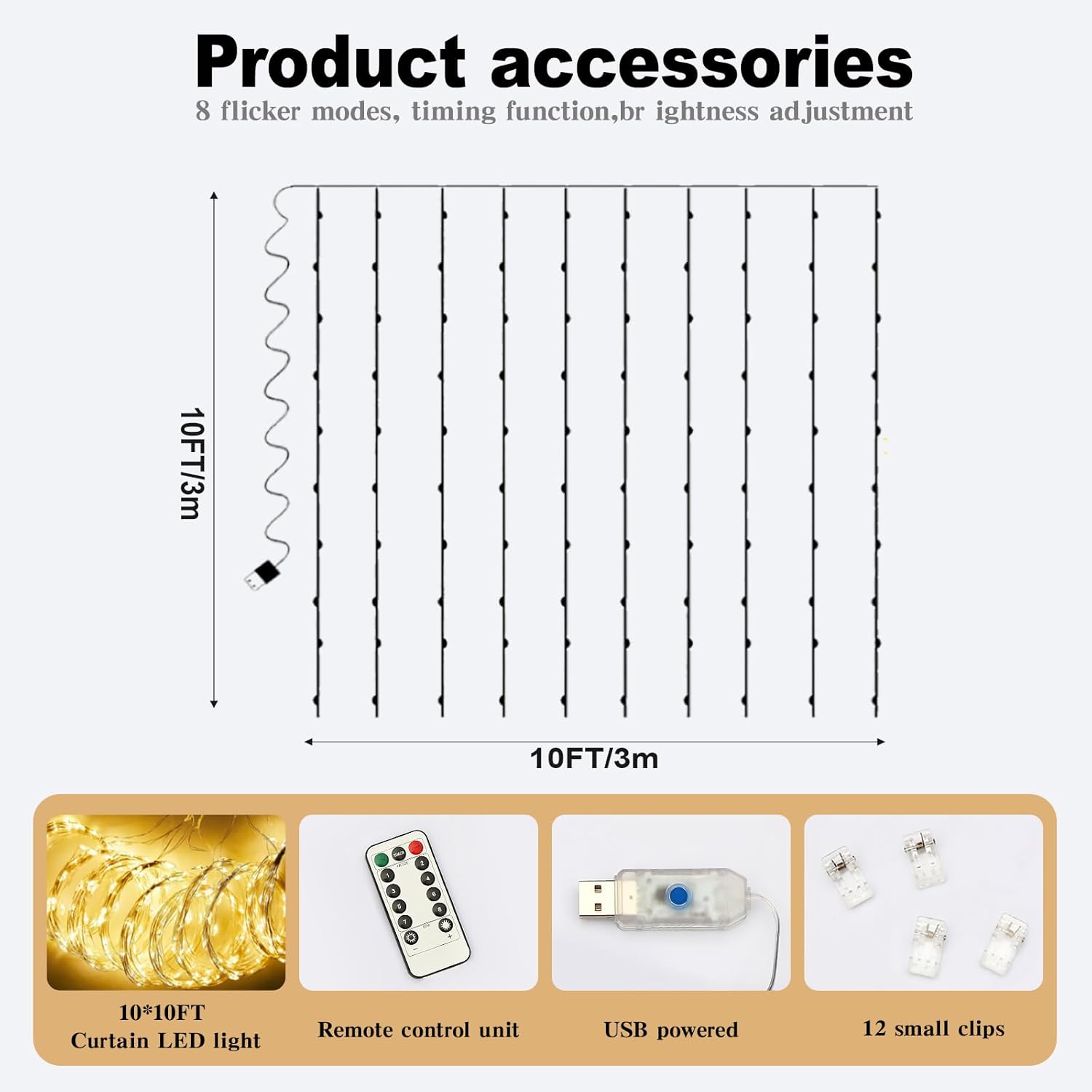 • Installation of the String Lights: The string lights come with 12 transparent clips. During installation, use the clips to attach the light wires to the curtain. The string lights can be powered by USB interface. These string lights are sturdy and durable, so you can install them with confidence.
