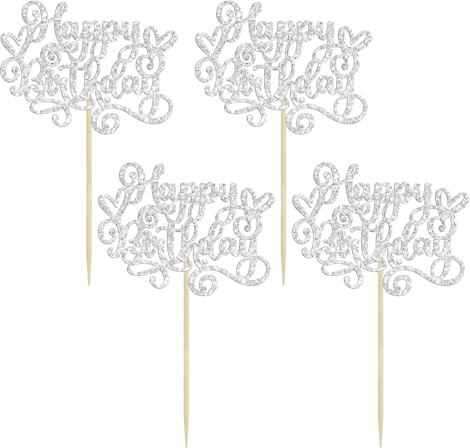 Gyufise 24Pcs Happy Birthday Cupcake Toppers Glitter Happy Birthday Cupcake Picks for Celebrating Happy Birthday Party Decor Anniversary Theme Party Cake Decorations Supplies Silver
