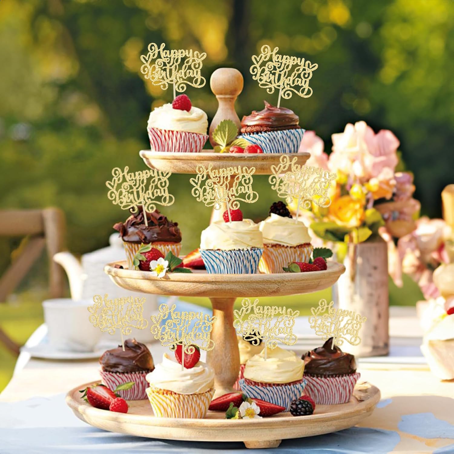 Gyufise 24Pcs Happy Birthday Cupcake Toppers Glitter Happy Birthday Cupcake Picks for Celebrating Happy Birthday Anniversary Theme Party Cake Decorations Supplies Gold