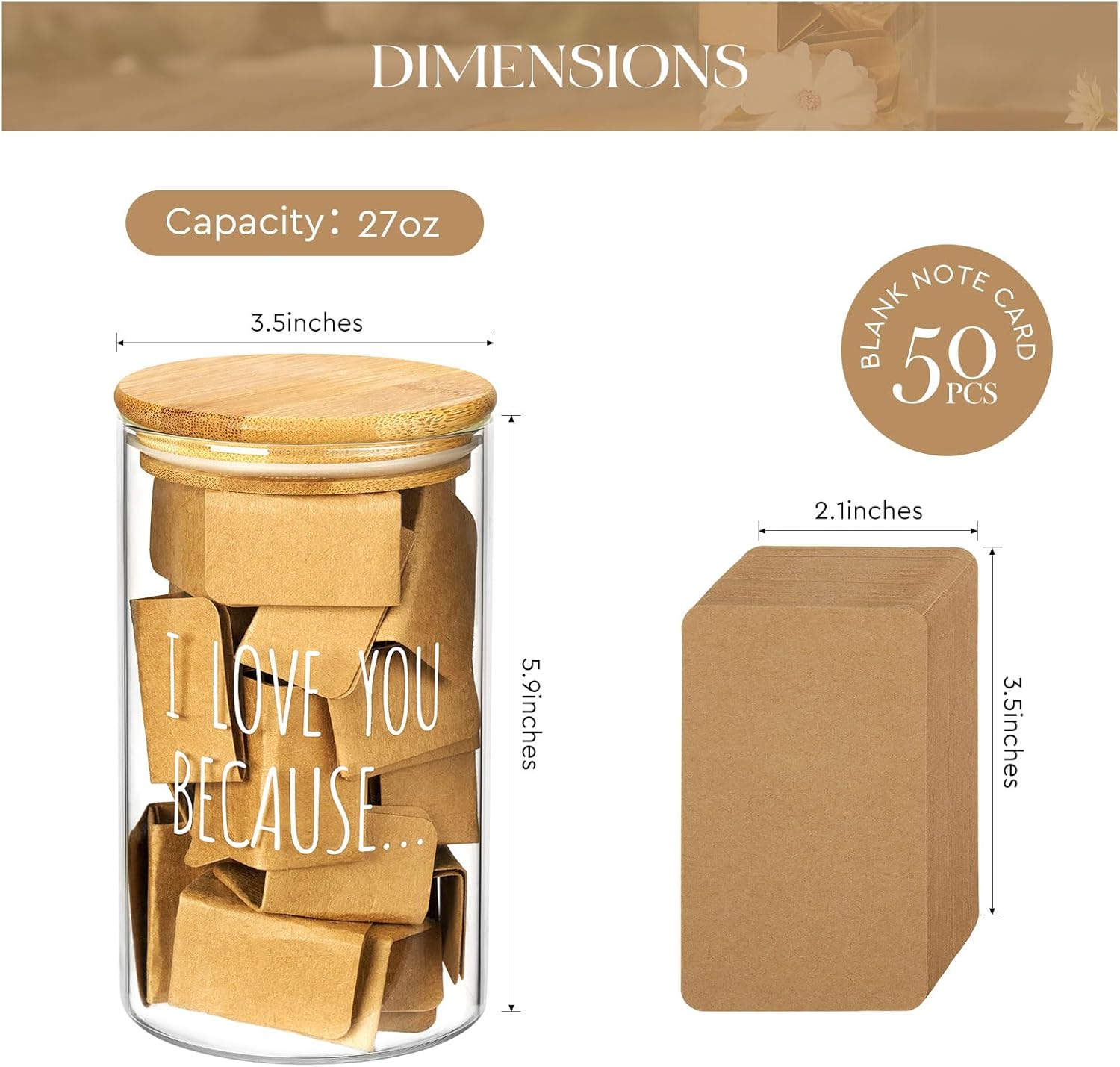 • 50 Reasons Why I Love You Jar: Includes 50 brown blank notes to write memories, love notes & gratitude. Fill it with "reasons I love you"——surprise messages, couple fight resolutions or friendship encouragement