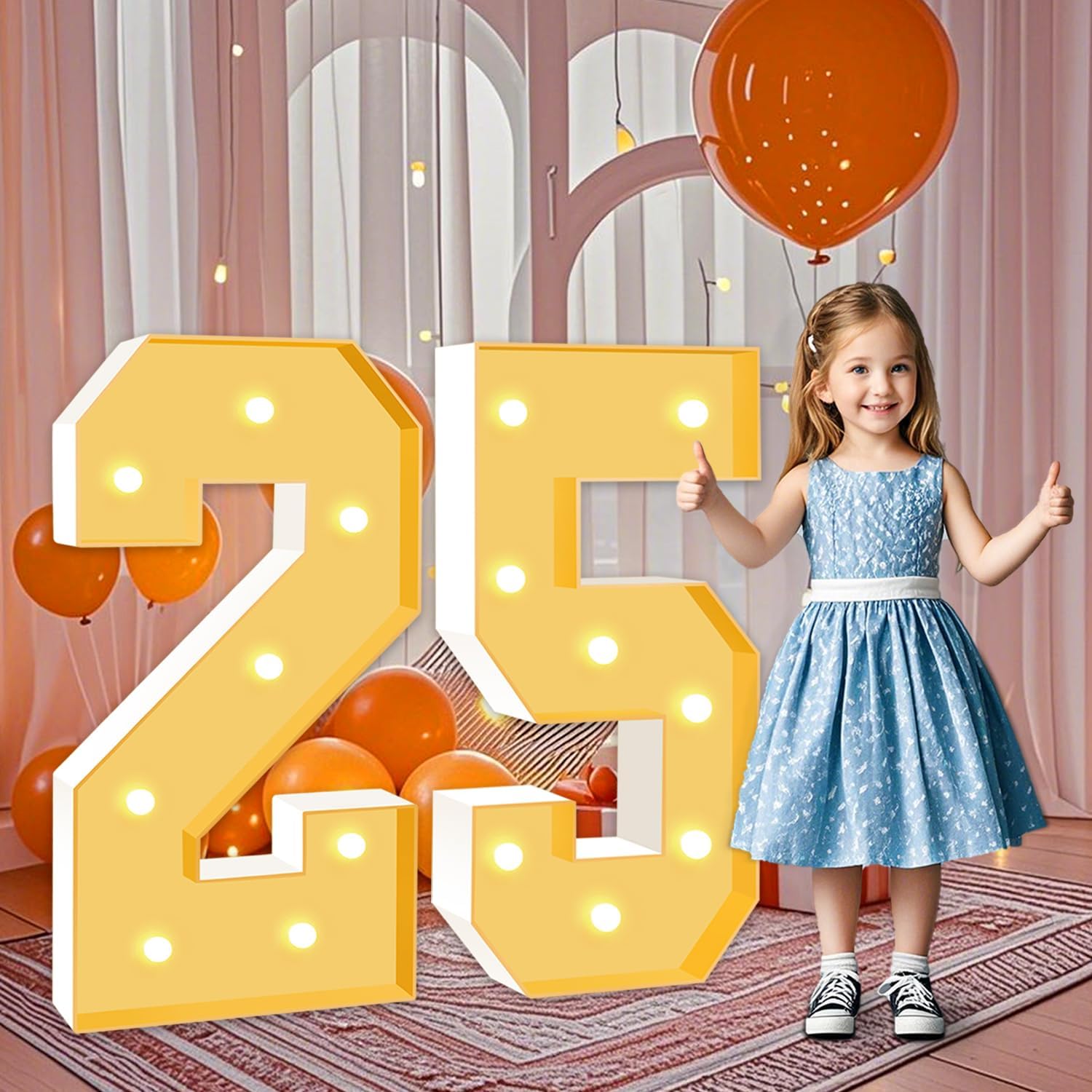 • BRIGHT & SAFE LIGHTING: The light up numbers are powered by 3 AA batteries(not included), ensuring the safety of all your guests. There's a switch on the battery compartment, you can switch the Warm Yellow led light from steady to cheerful flashing, ideal for creating a cozy, inviting ambiance to any celebration or event.