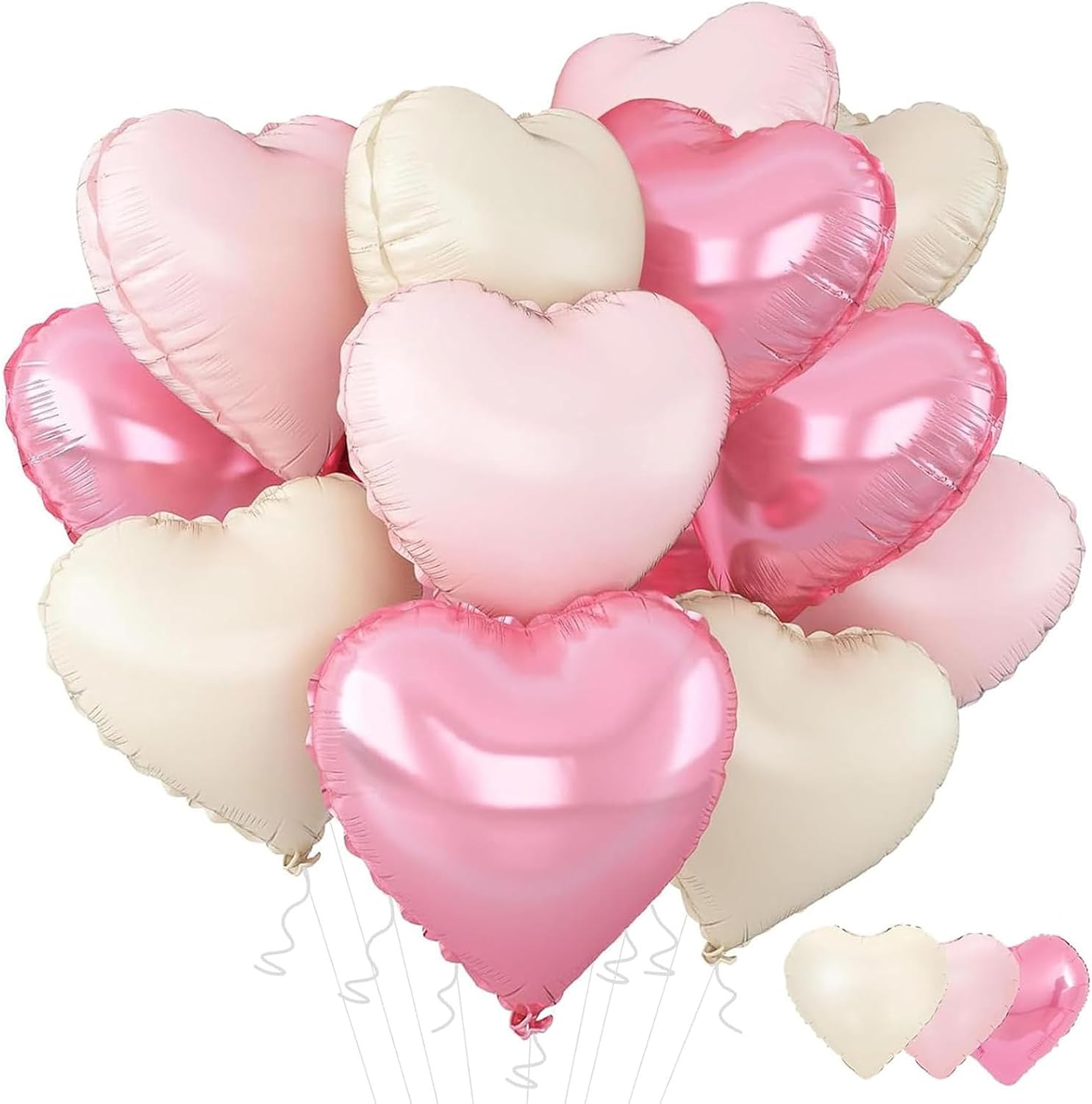 12Pcs Pink White Heart Balloons 18Inch Baby Pink Cream White Heart Shaped Foil Balloons for Birthday Valentines Day Bridal Engagement Wedding Anniversary Baby Shower Party Decorations