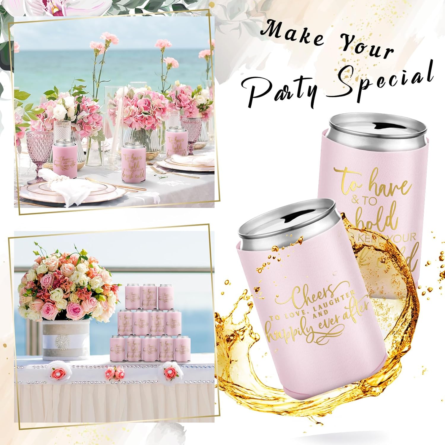 • Satisfying Party Package: our huge package containing 50 pieces of wedding can cooler decorations; Make every drink a celebration with our pink and gold can coolers; They are suited to uplift the atmosphere at weddings, bridal showers, and bachelorette parties