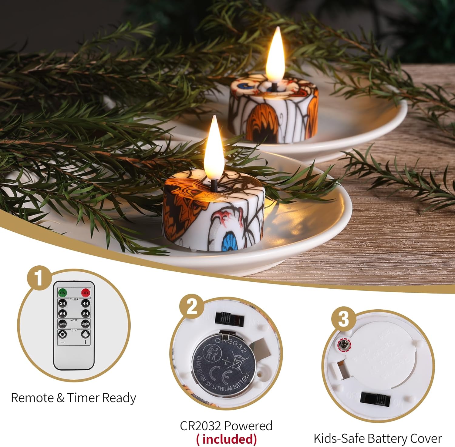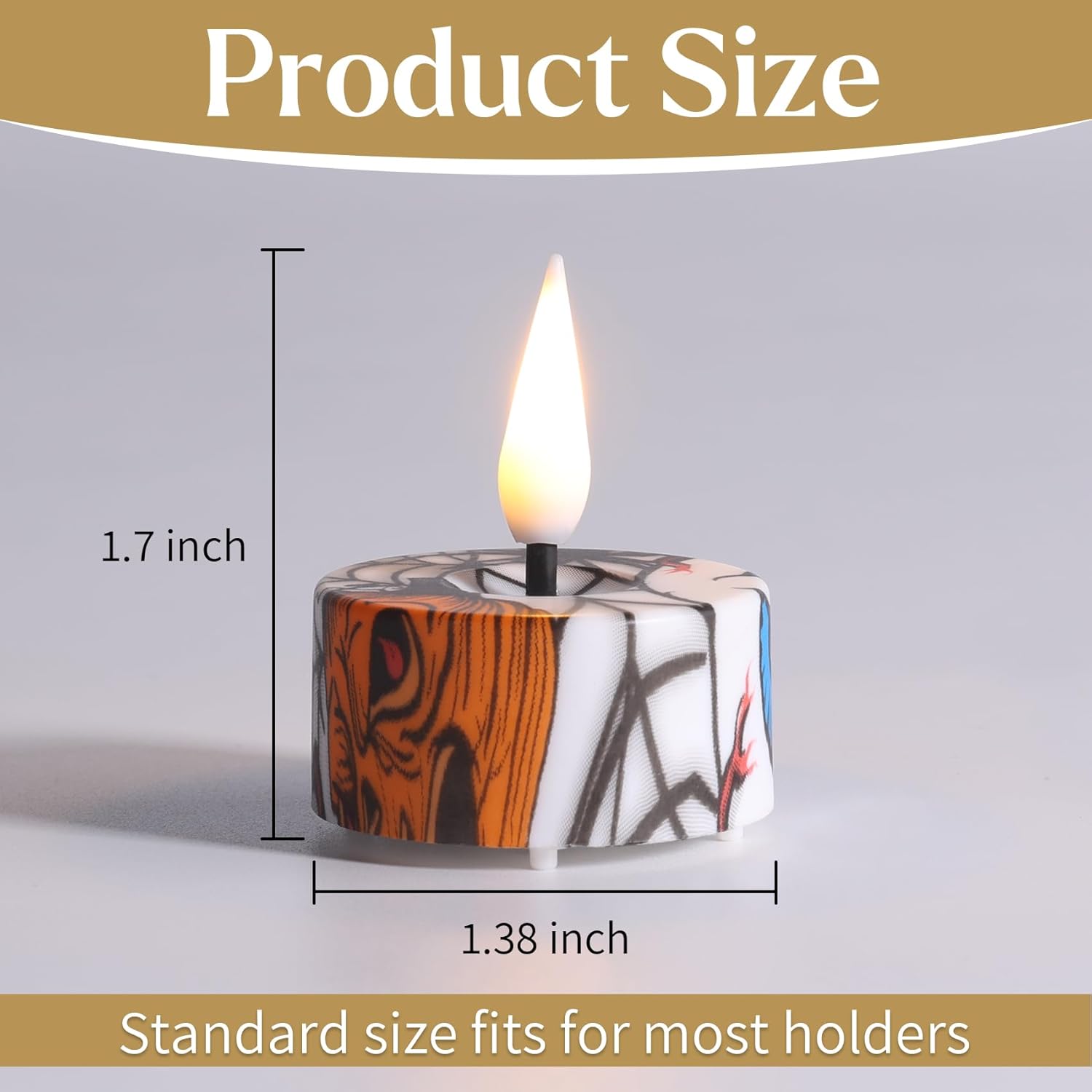 Eywamage Halloween Flameless Tealights with Remote, Spooky Spider Pumpkin Battery LED Tea Votive Candles Set of 12